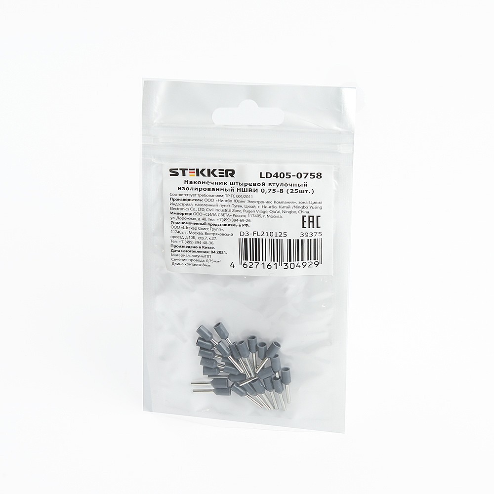 Наконечник штыревой втулочный изолированный НШВИ 0,75-8 (DIY упаковка 25 шт) Stekker LD405-0758 39375