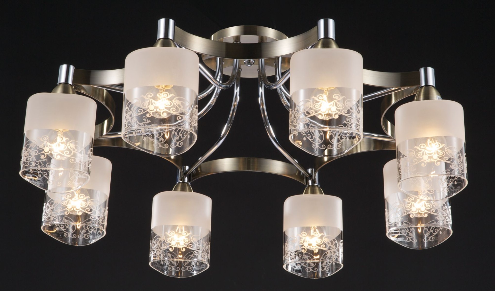 Люстра. Способ крепления: монтажная пластина прикручивается к потолку. Цвет Хром + Бронза. На всех светильниках используются патроны повышенной мощности. Можно использовать лампочки до 60W (Цоколь Е14). Красочная Инструкция по эксплуатации, сборке на русском языке в комплекте.