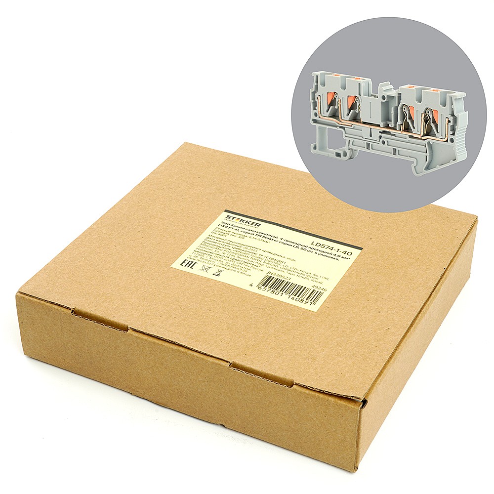 Зажим самозажимной, 4-проводной проходной 4,0 мм Stekker 49246 49246