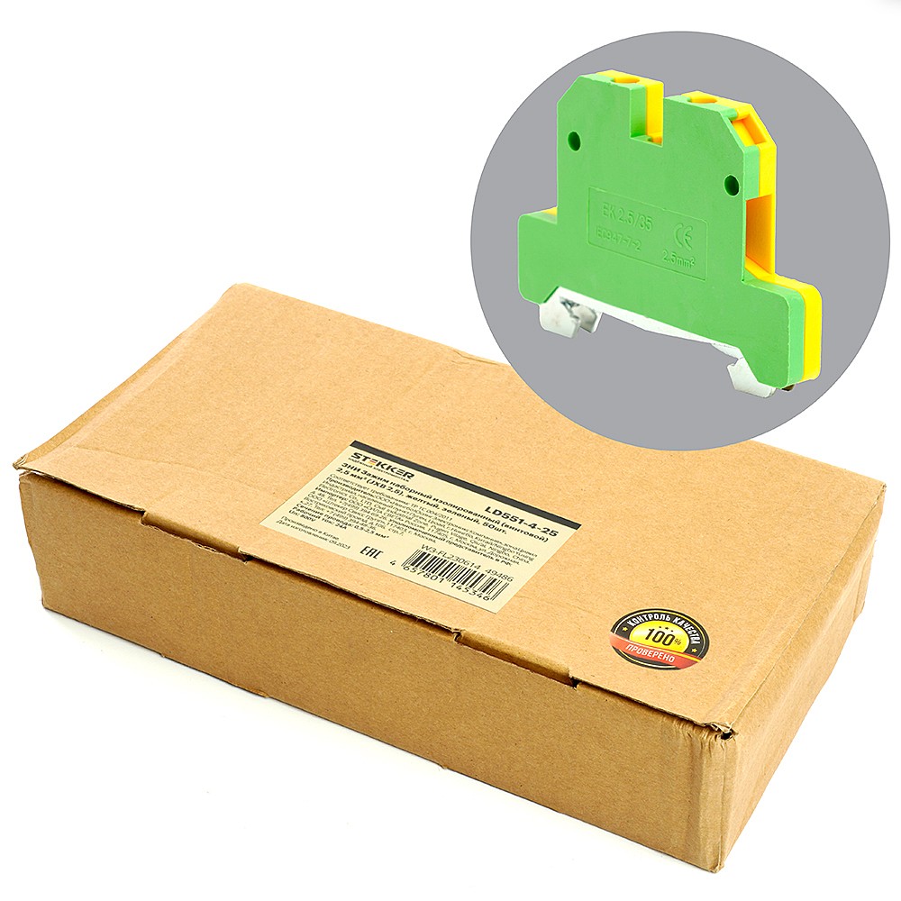 LD551-4-25 ЗНИ Зажим наборный изолированный (винтовой) 2,5 мм2 (JXB 2,5), желтый,зеленый