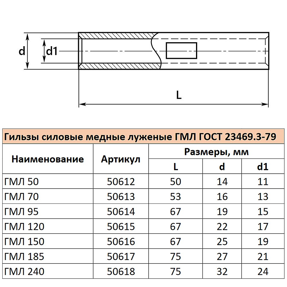 Гильза медная луженая Stekker LD-GML-70-13 50613