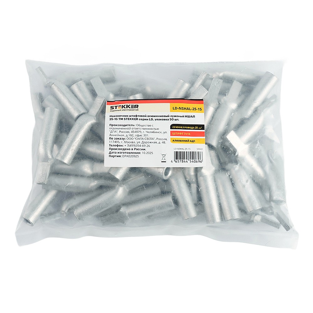 Наконечник штифтовой алюминиевый луженый Stekker LD-NSHAL-25-15 50602