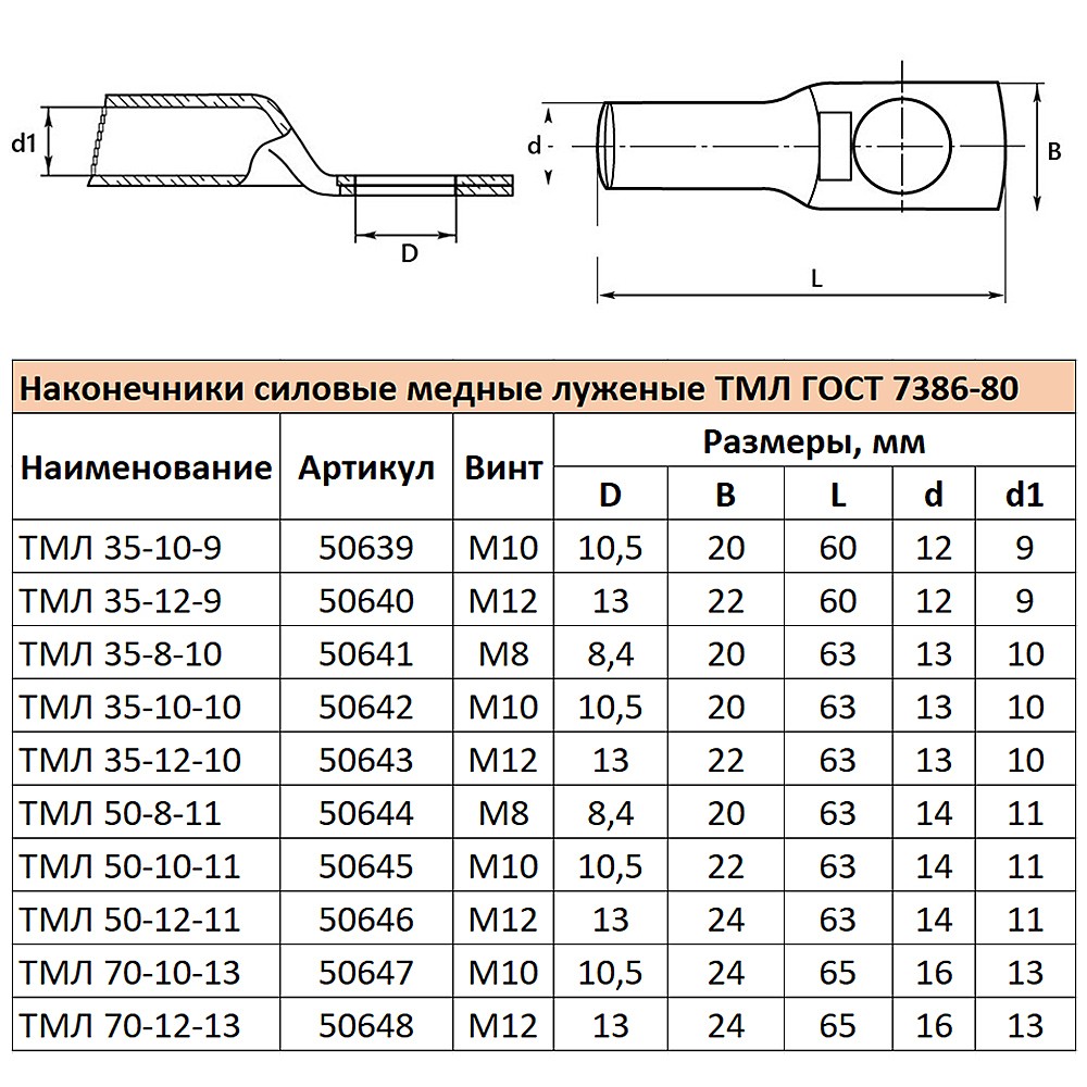 Наконечник медный луженый Stekker LD-TML-35-10-10 50642