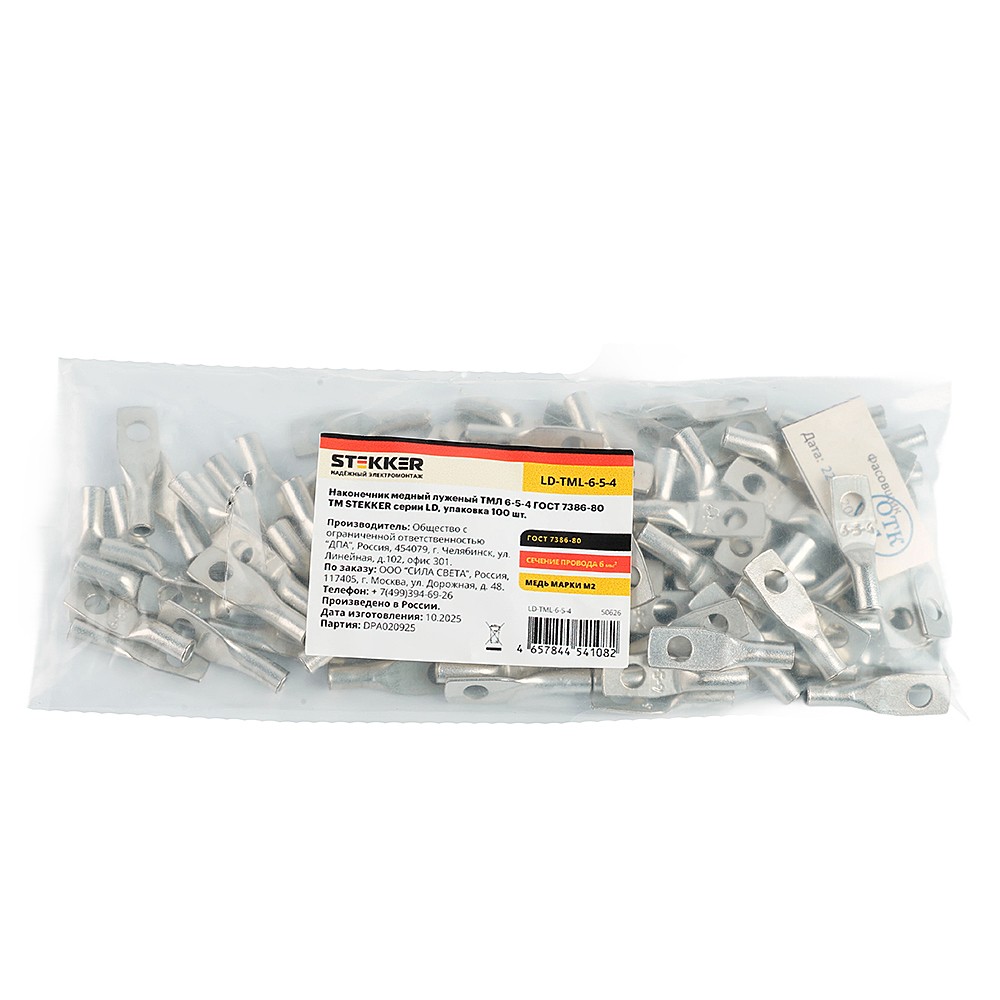 Наконечник медный луженый Stekker LD-TML-6-5-4 50626