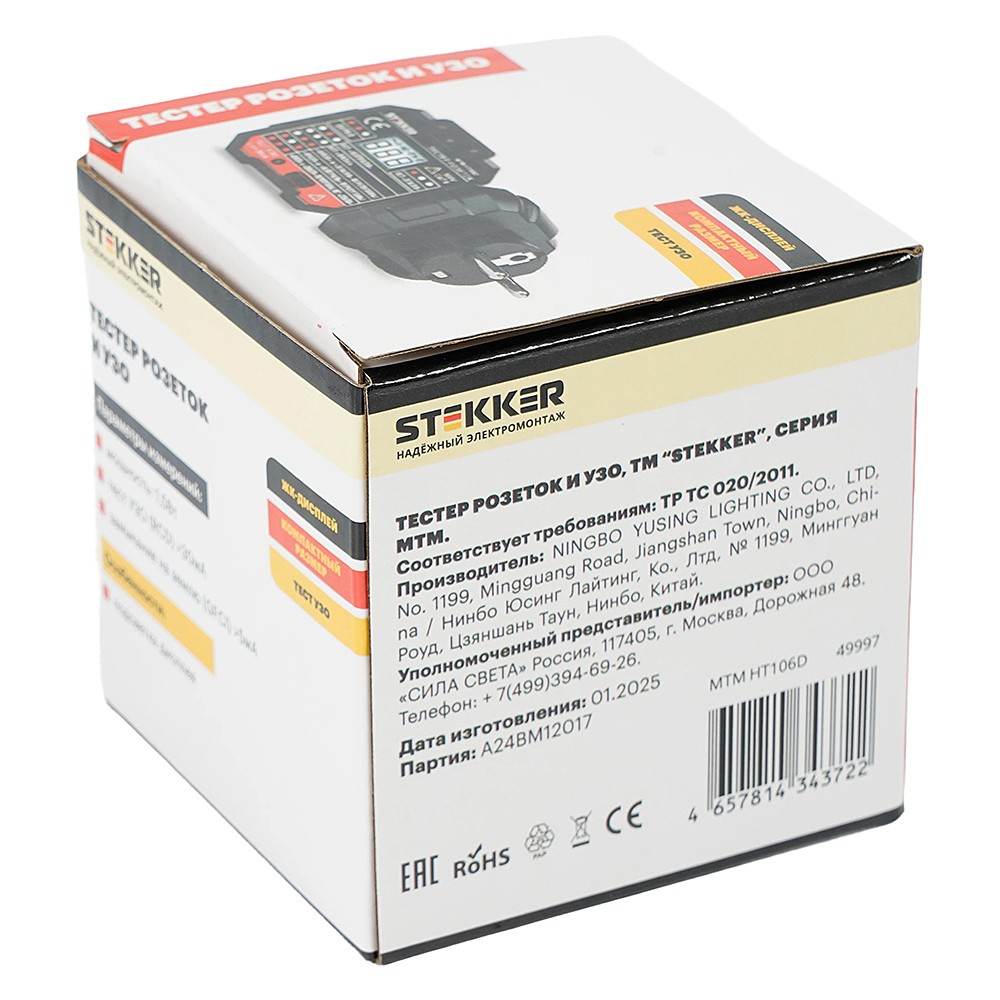 Тестер розеток и УЗО, питание от сети 230V, Stekker MTM HT106D 49997
