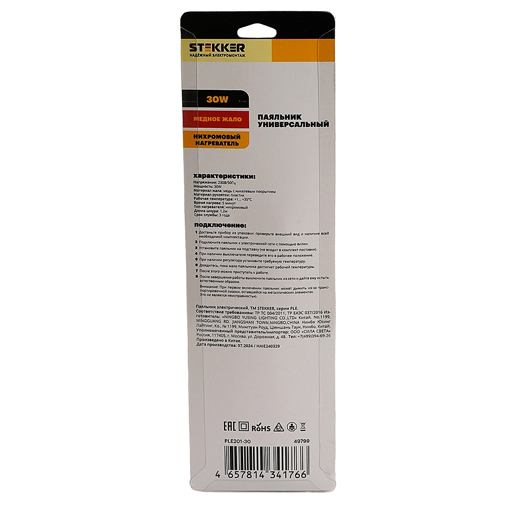 Паяльник 30W с кнопкой вкл., Stekker PLE201-30 49799