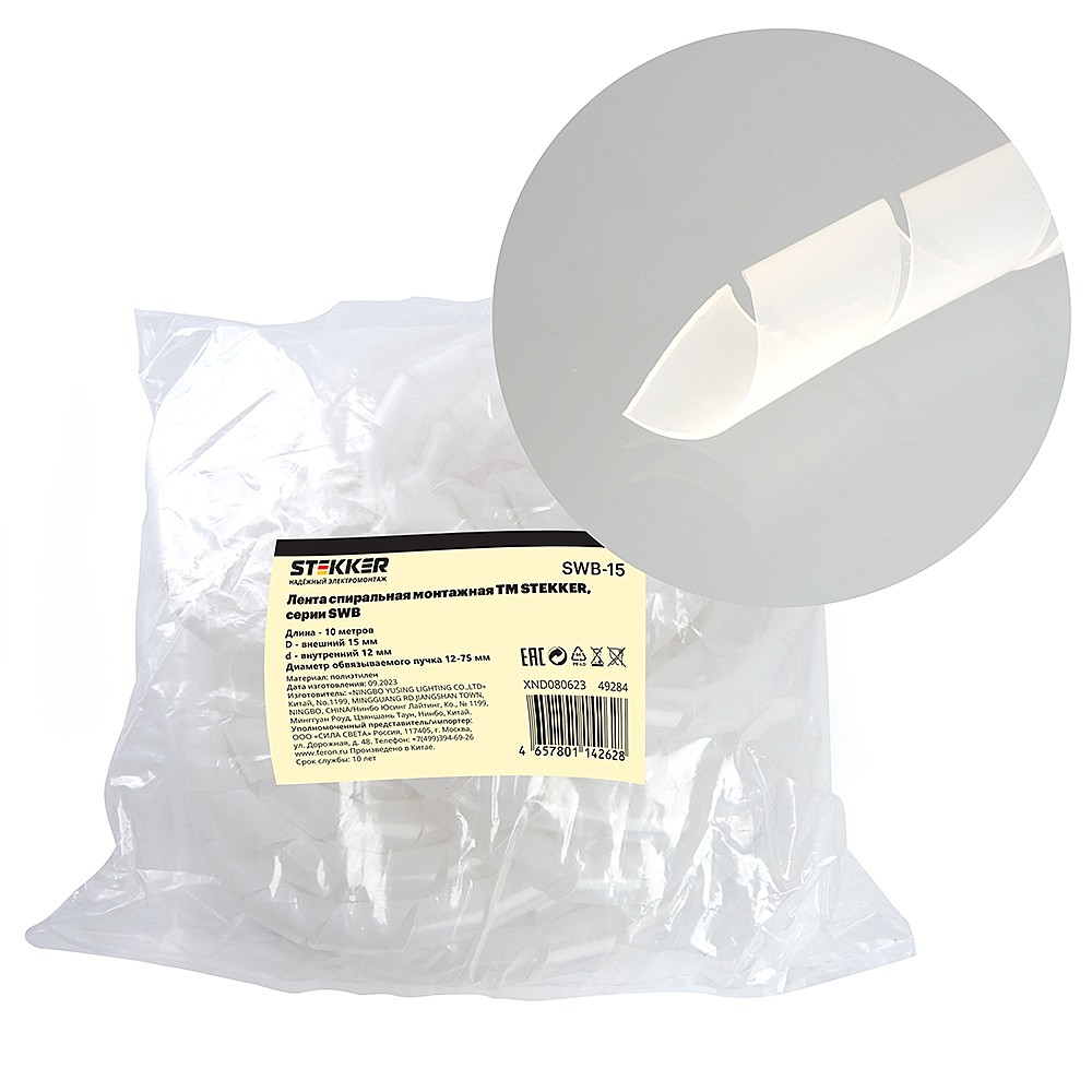 Лента спиральная монтажная Stekker SWB-15 49284