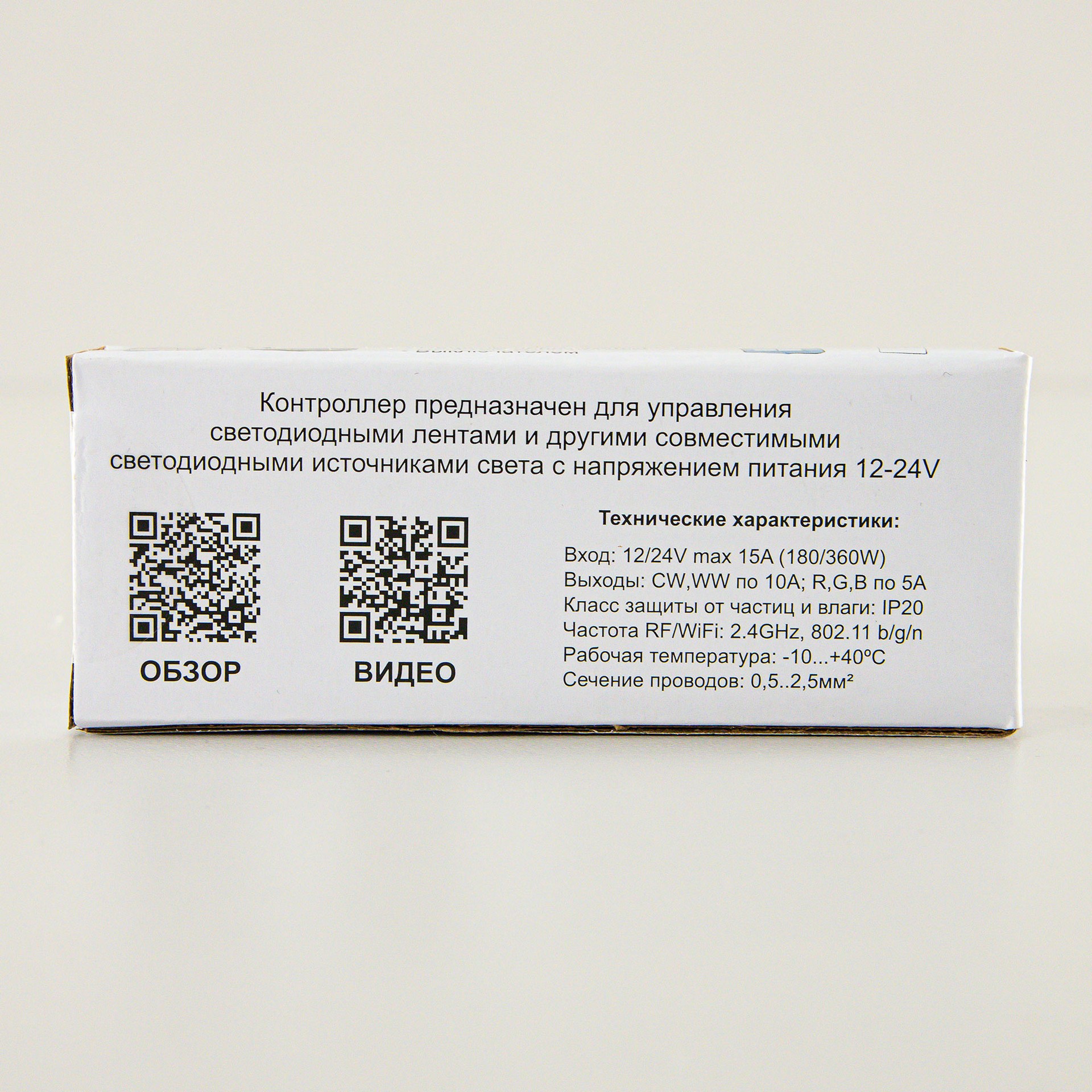 Работает как с 12 вольтовыми, так и с 24-х вольтовыми лентами. Контроллер имеет 5 диммируемых каналов. Два канала по 10А для основного света и три канала по 5А для цветной (RGB) подсветки. Одновременная работа основного света и RGB недоступна. Мощность 2-цветной ленты основного света можно подключить: при использовании ленты на 12В – до 180 Вт; лента на 24 В – до 360Вт.