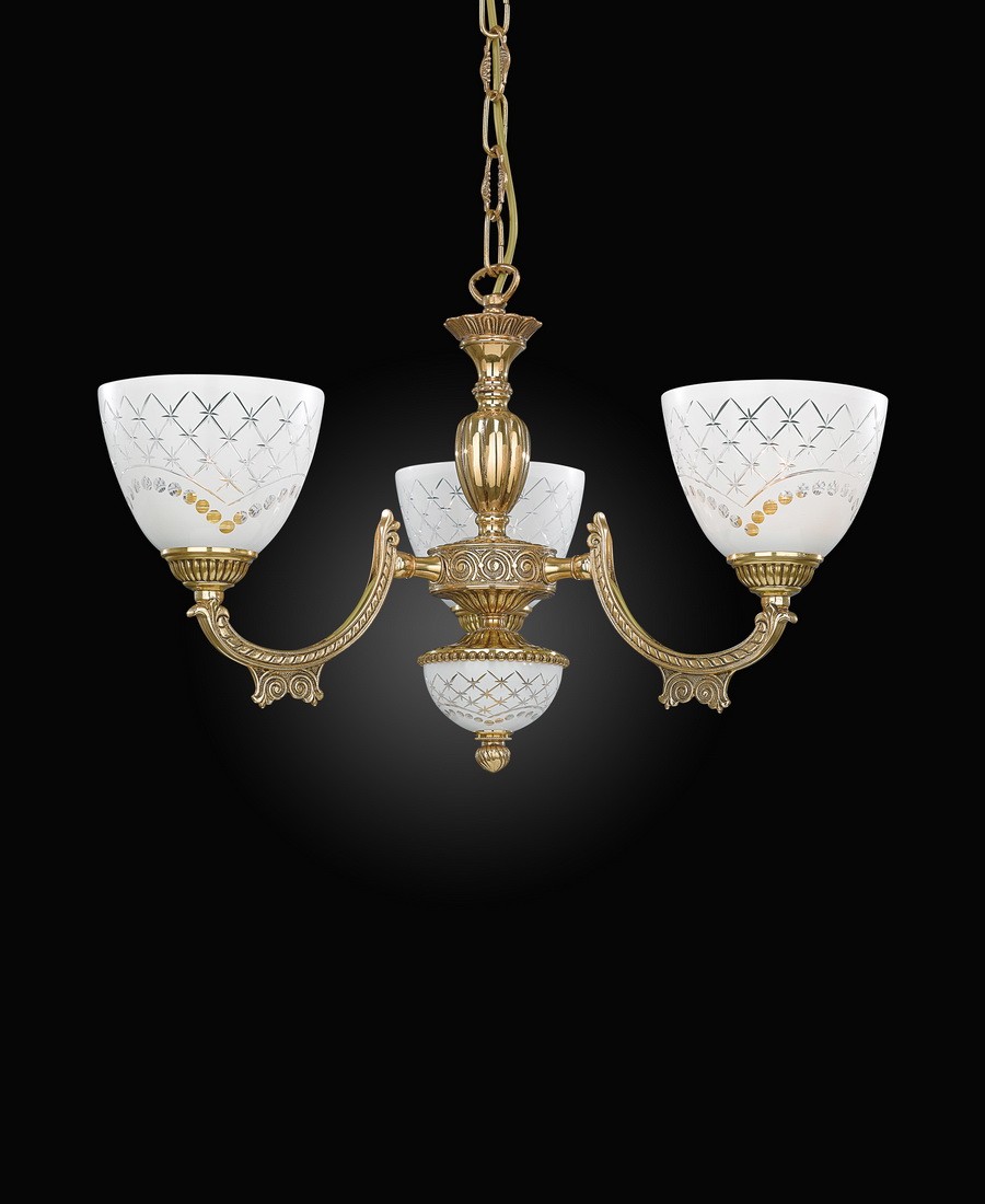 Корпус люстры изготовлен из высококачественной латуни и имеет покрытие ORO FRANCESE.