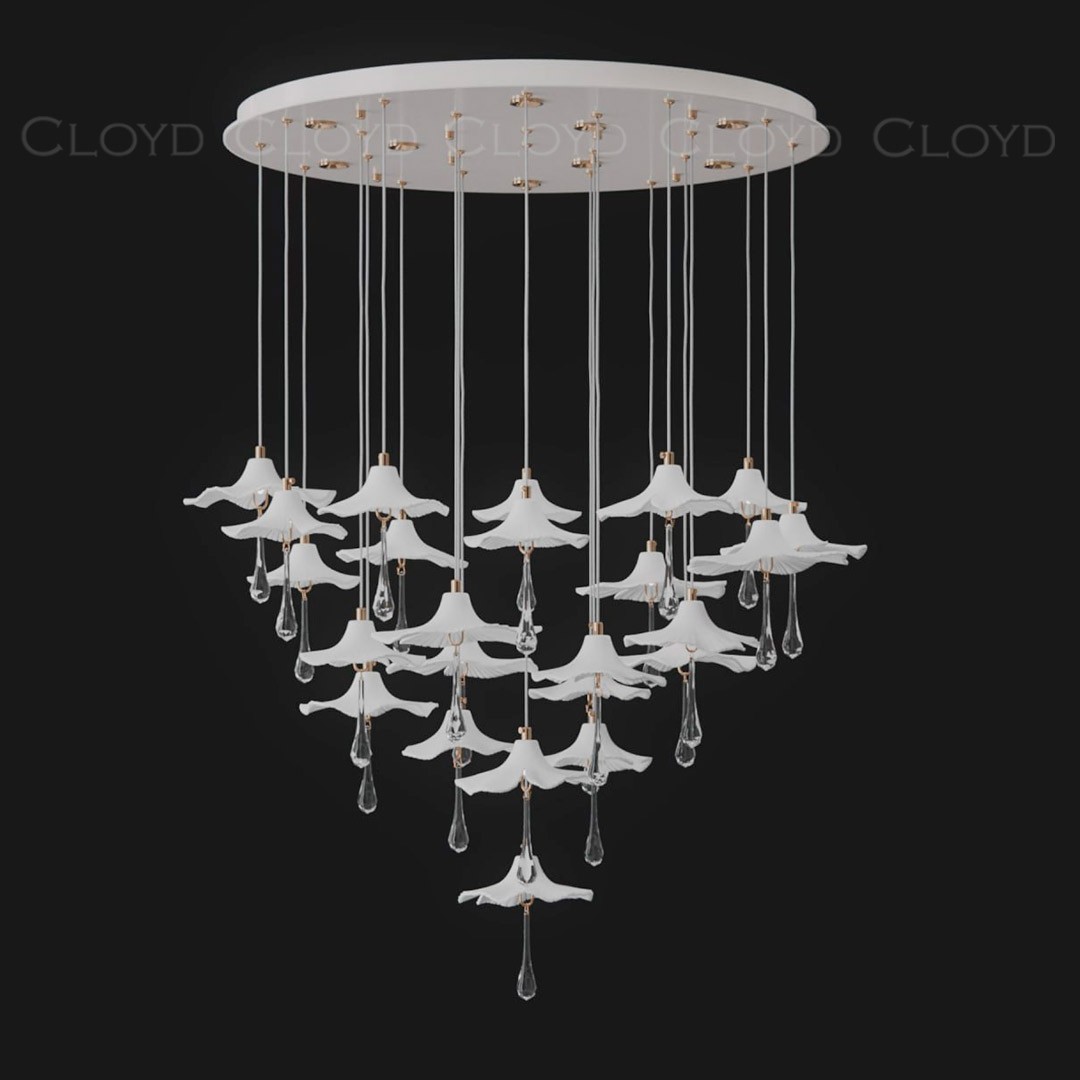 Люстра подвесная Cloyd SHANGRILA (Клойд Шангрила) C33 / арт.11491, ø: 100 см. высота: 120 см, источник света: GU10 (LED ≈ 8 Вт) х 9 шт + G4 (LED ≈ 3 Вт) x 24 шт, цвет металла - белый (окраска). Гарантия: 1 год.