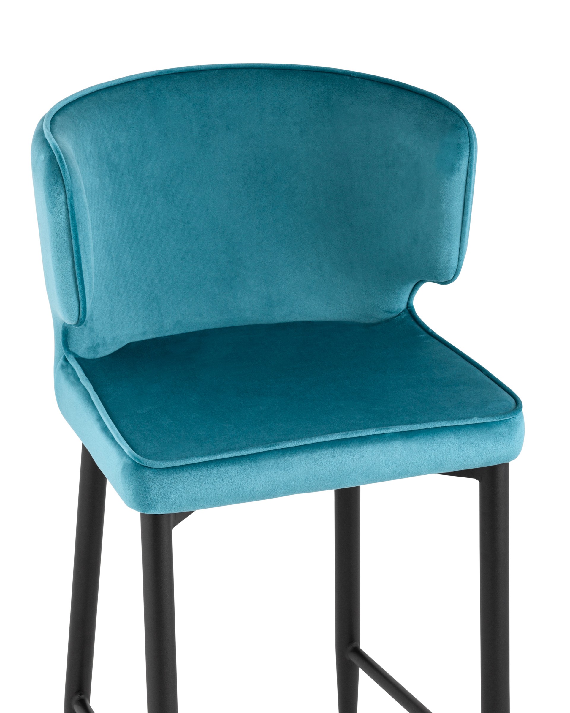 Мягкая обивка выполнена из велюра - прочного износостойкого материала. Прямые металлические ножки в черном цвете имеют нестандартную форму в виде перевернутого конуса, поэтому обеспечивают хорошую устойчивость и делают стул оригинальным. Удобная подножка позволяет расположиться максимально комфортно.