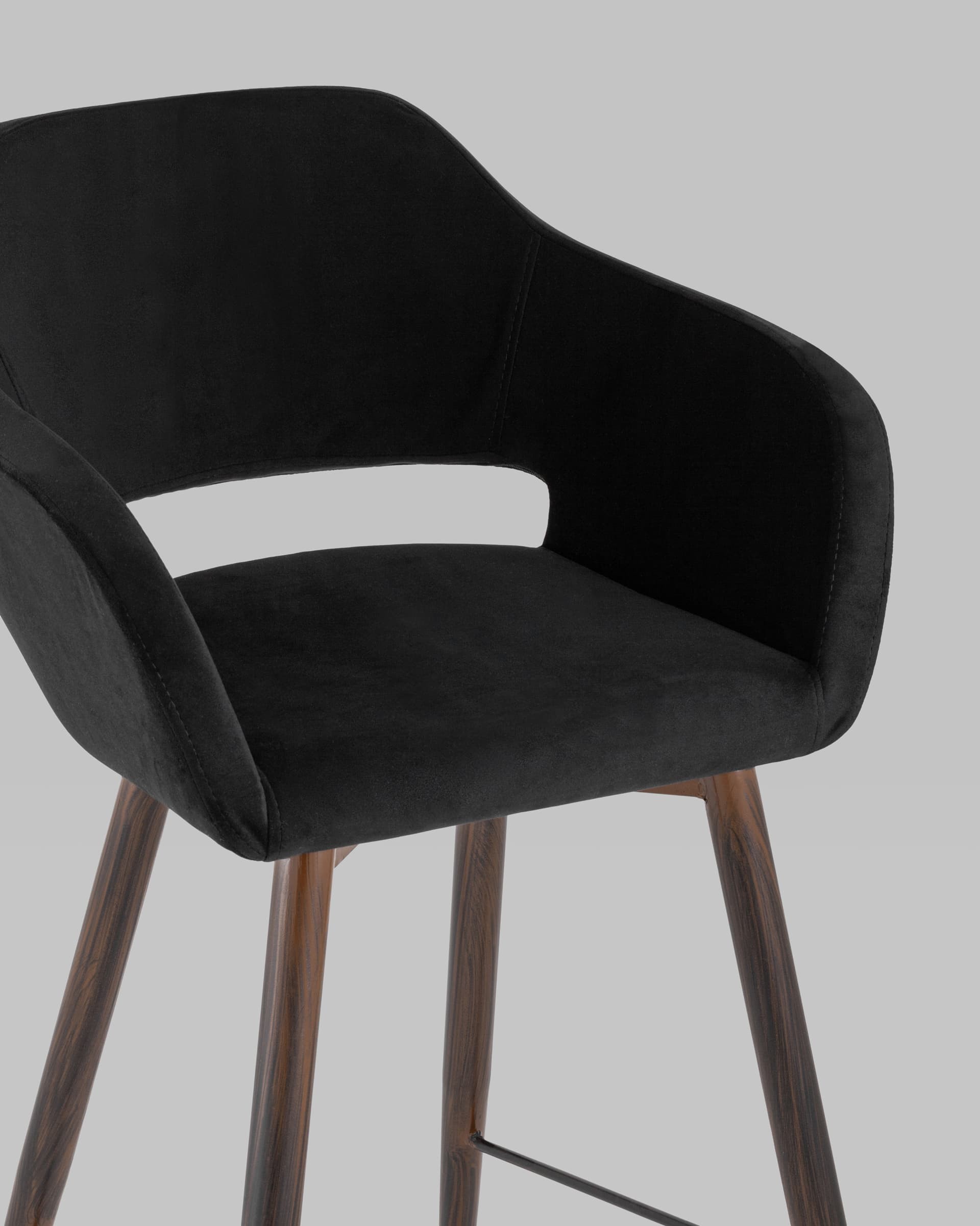 Стул барный Саймон обивка велюр черный ножки металл темное дерево