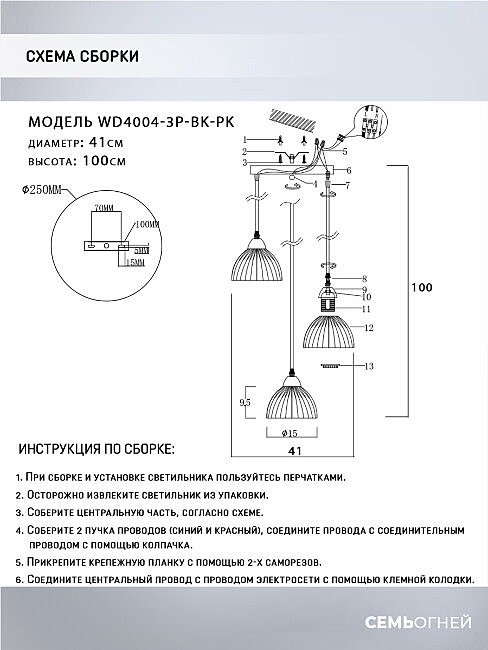 Светильник подвесной Wedo Light Dzhenis WD4004/3P-BK-PK