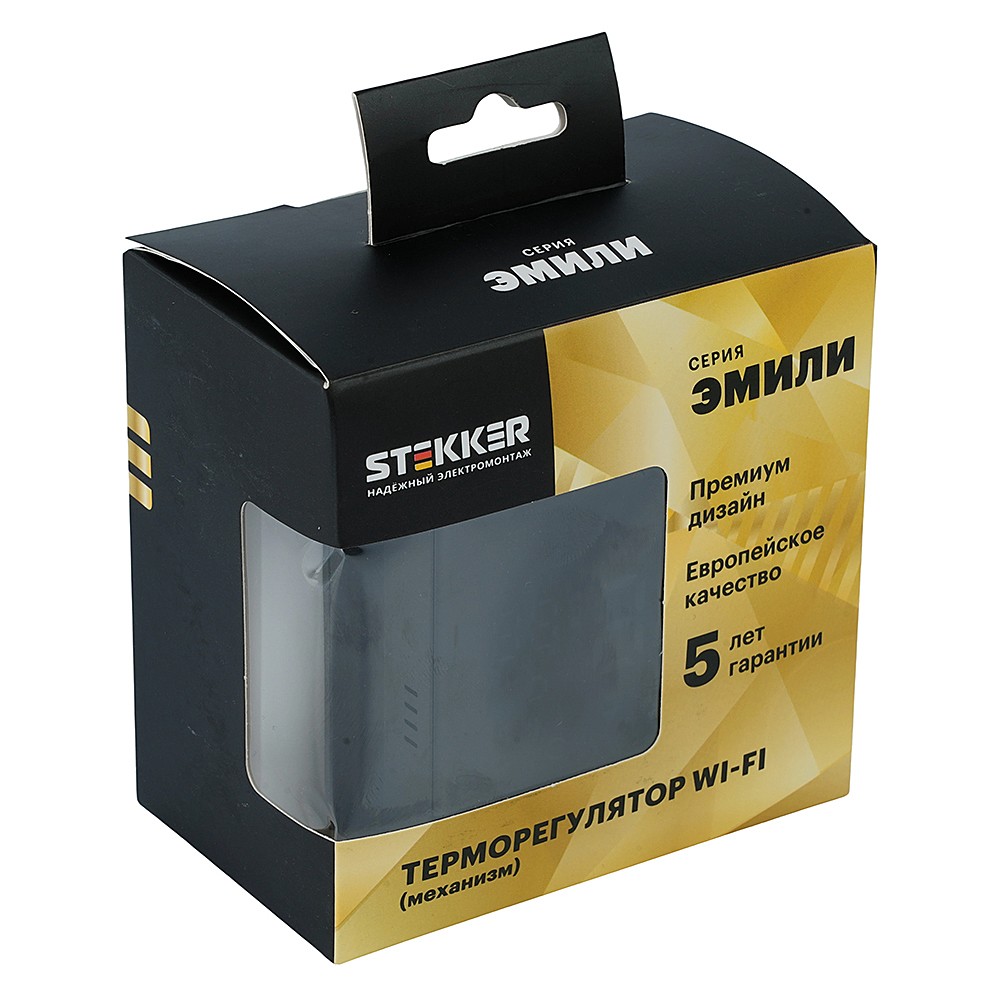 Терморегулятор Wi-Fi (механизм), STEKKER, 250В, 3500Вт, серия Эмили, RSW00-5119-05, черный уголь, soft touch