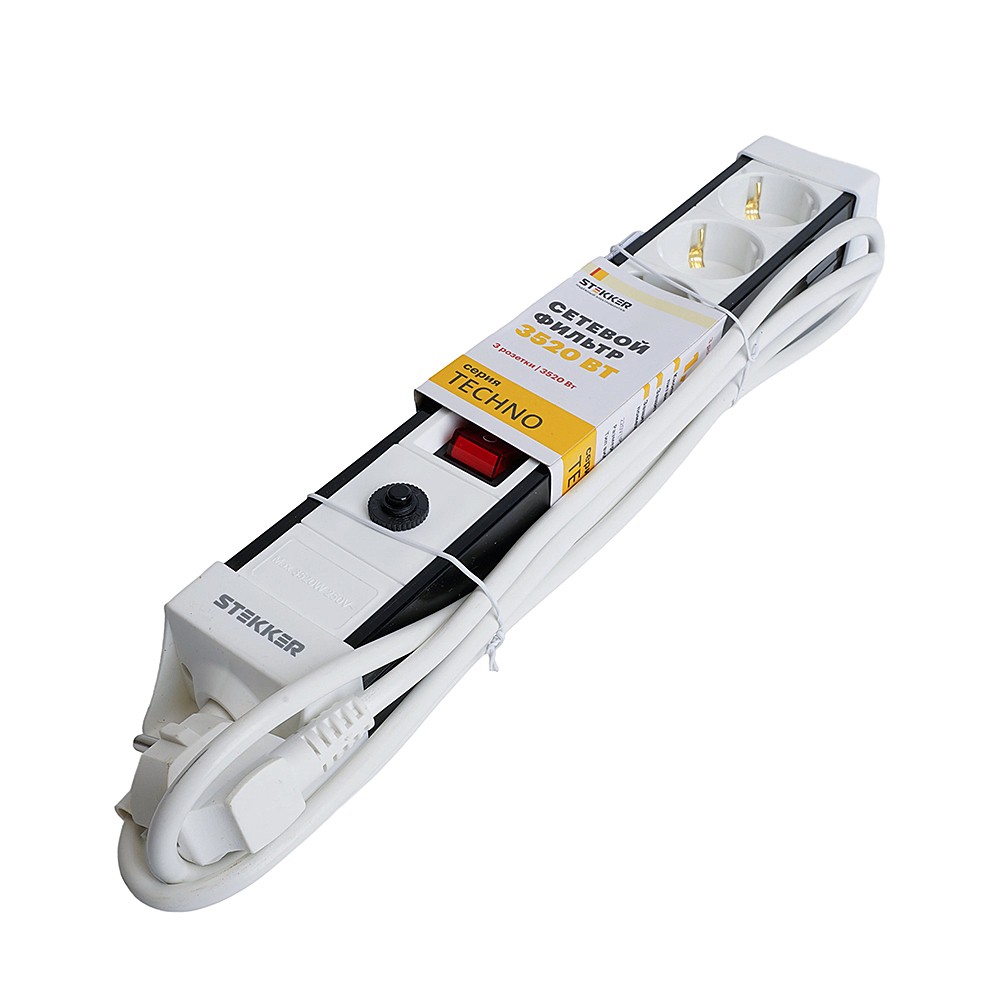 Сетевой фильтр 3-местный с/з 3x1мм2, 3 м, Stekker Techno 50145