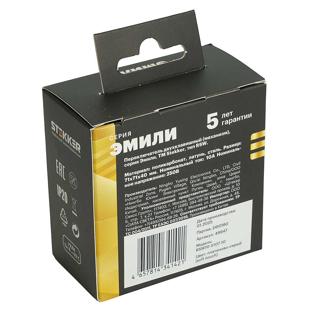 Переключатель 2-клавишный (механизм) Stekker Эмили 49947