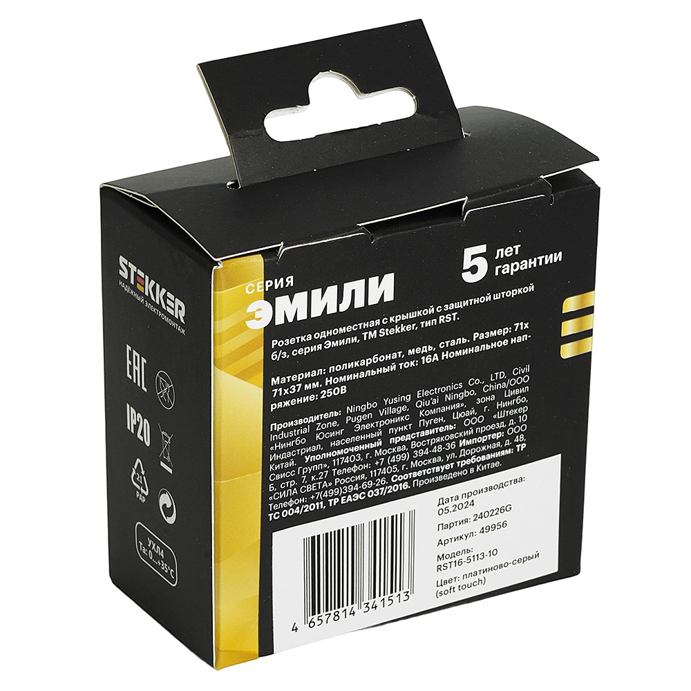 Розетка 1-местная с крышкой с защ. штор Stekker Эмили 49956