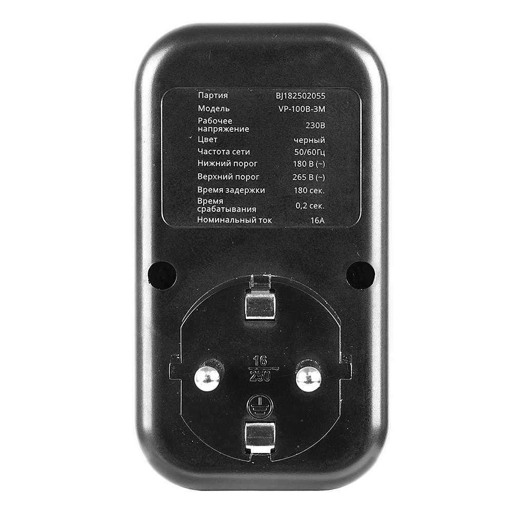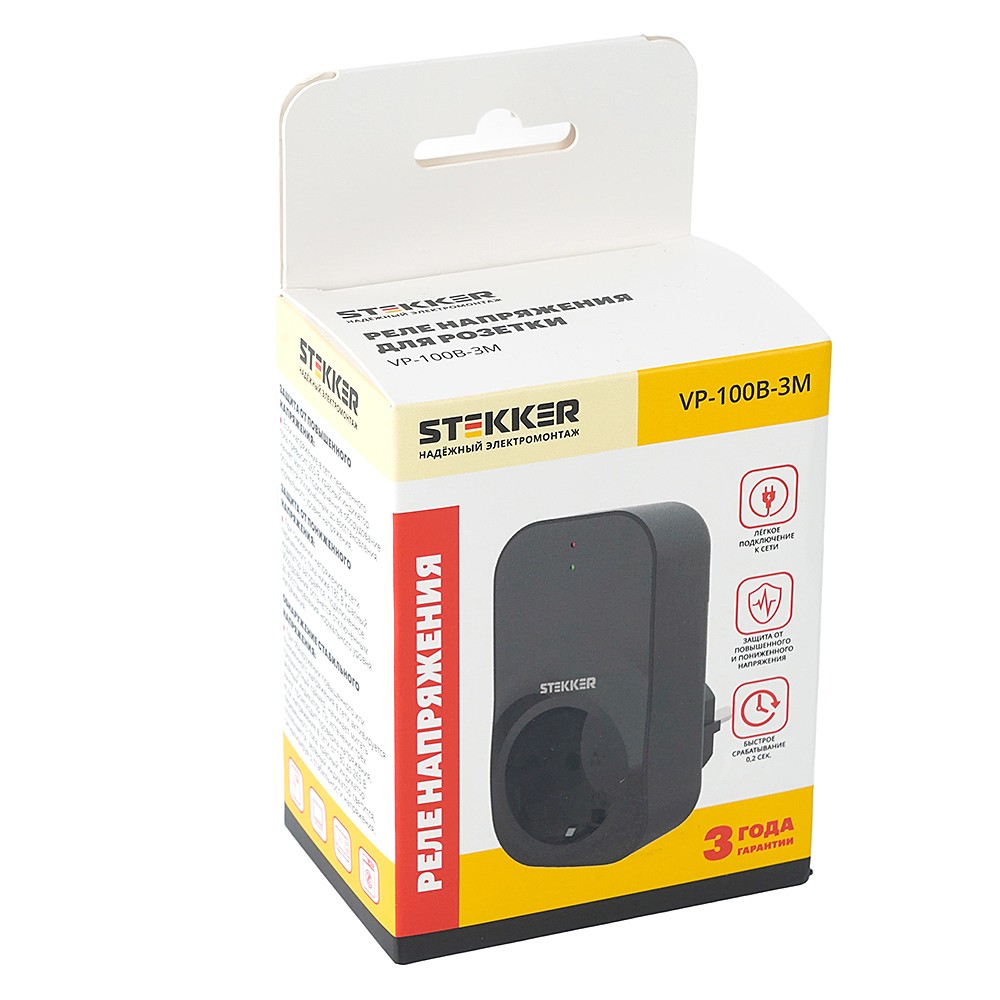 Реле напряжения для розетки STEKKER VP-100B-3M, 230В,16A,черный