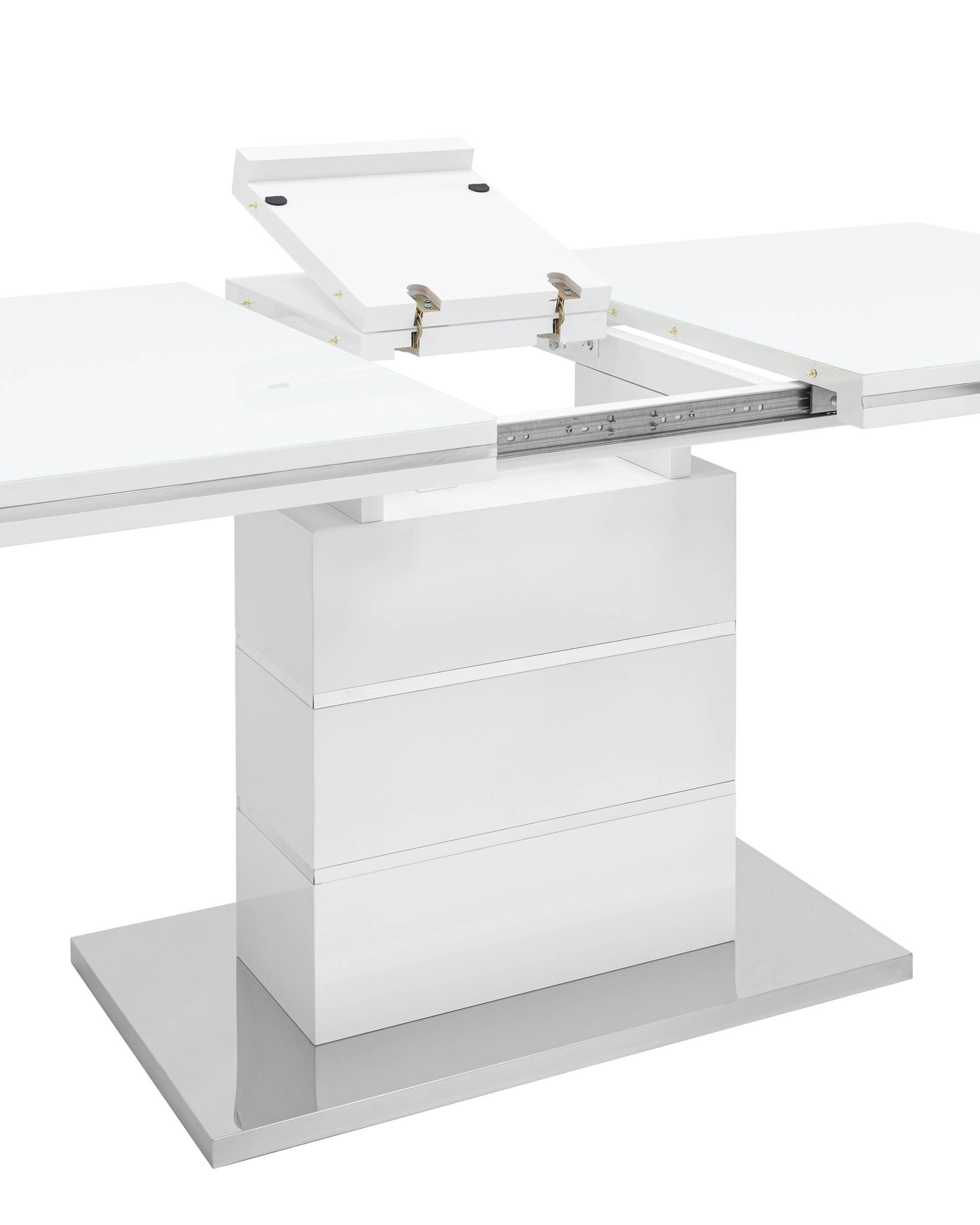 Раскладной обеденный стол белого цвета.