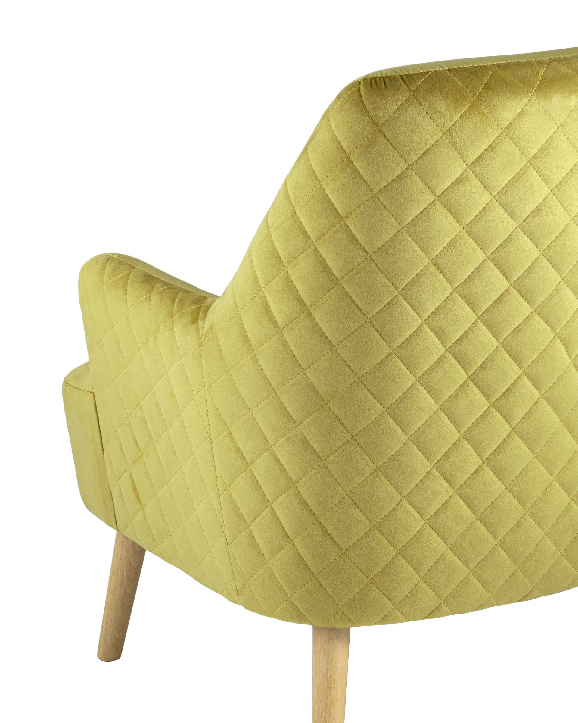Широко расставленные ножки из массива дерева обеспечивают надежность и устойчивость конструкции. Удобная мягкая спинка, широкое сиденье, мягкие подлокотники. Обивка из мягкого велюра обеспечивает комфорт и уют. Внешняя сторона обивки спинки и подлокотников имеет ромбовидную стежку.