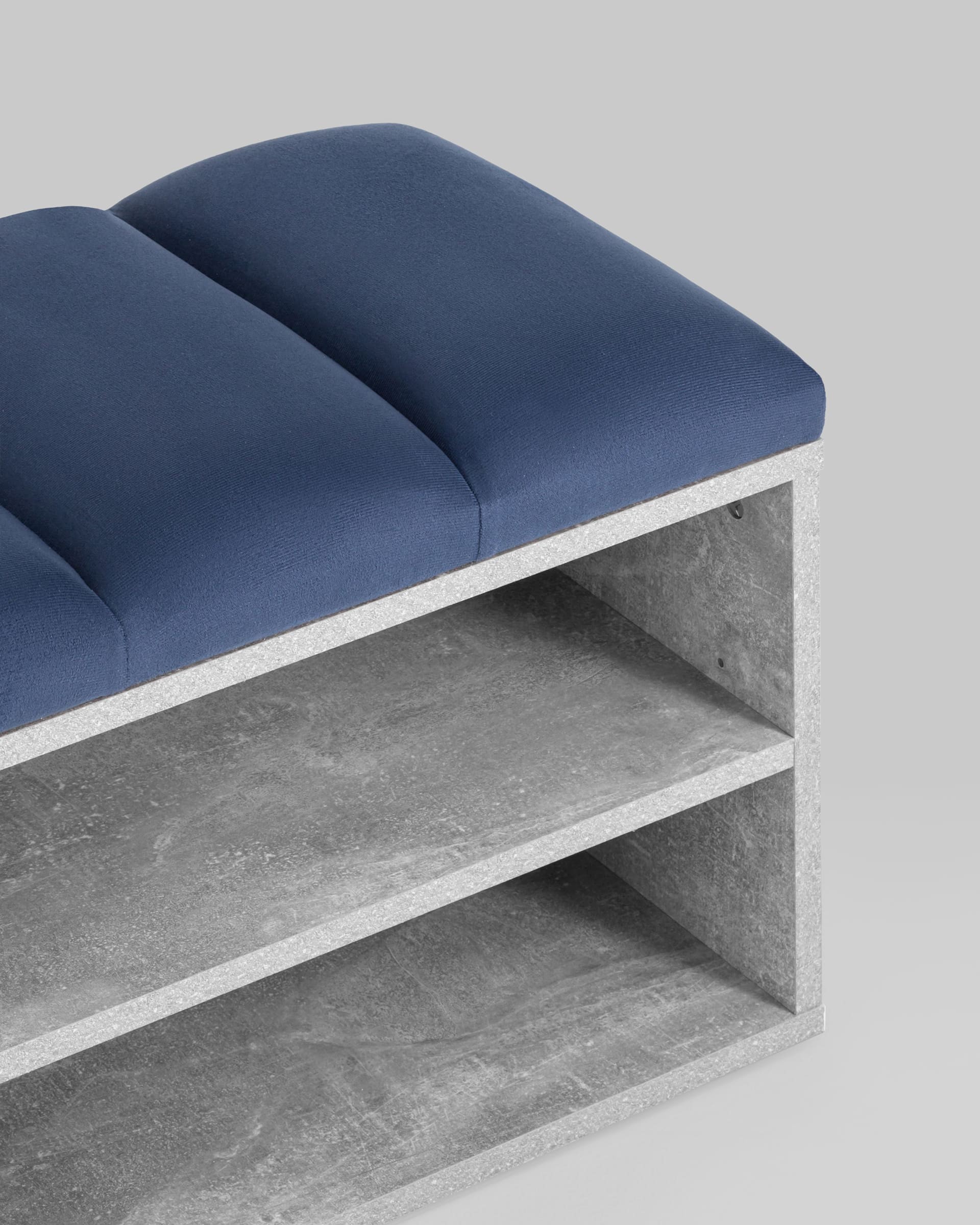 Обувница с мягким сиденьем Хольст 2 серая велюр синий