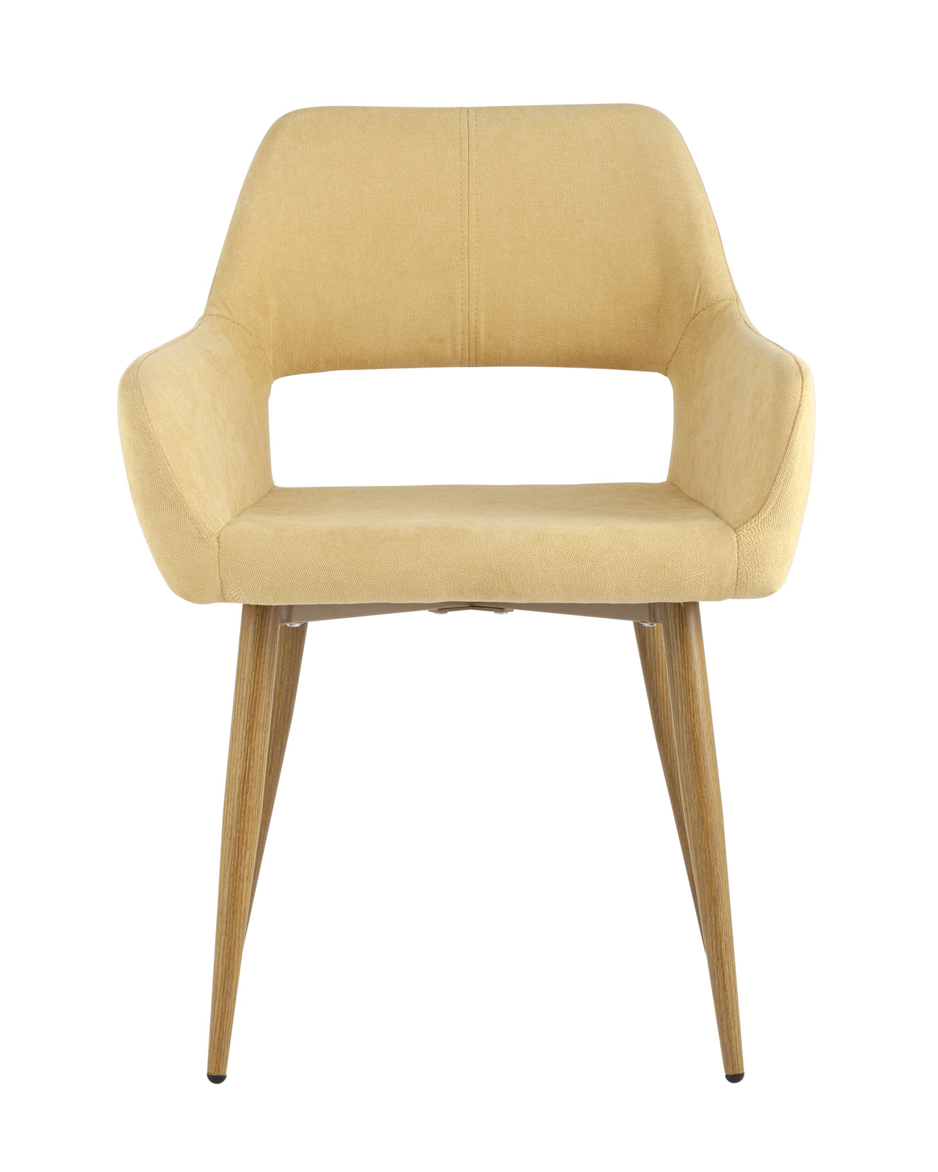 Стильный и мягкий кухонный стул имеет широкую эргономичную спинку и удобные подлокотники. Обивкой послужила высококачественная плотная ткань. Ножки металлические с принтом под дерево.