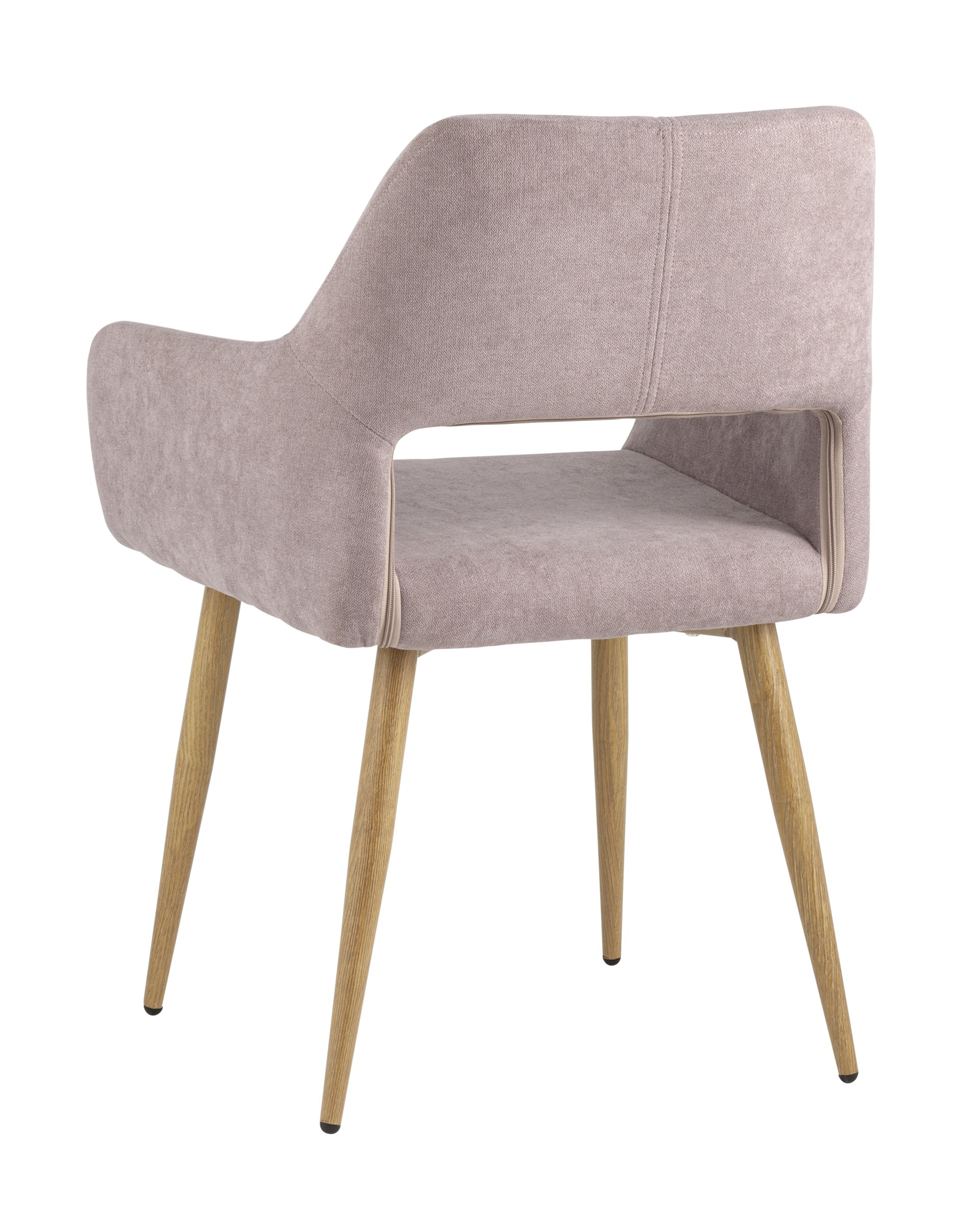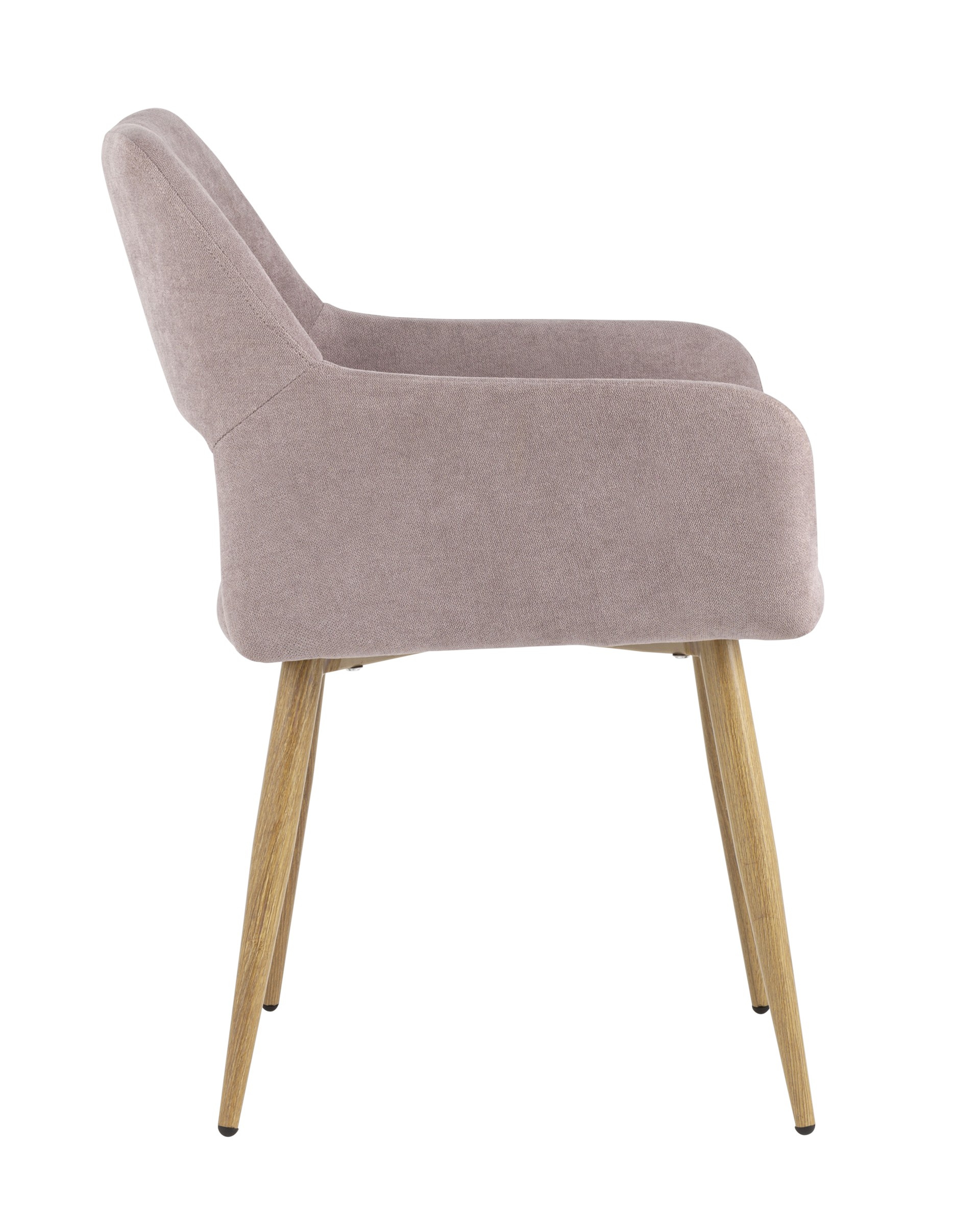 Стильный и мягкий стул имеет широкую эргономичную спинку и удобные подлокотники. Обивкой послужила высококачественная плотная ткань. Ножки металлические с принтом под дерево.