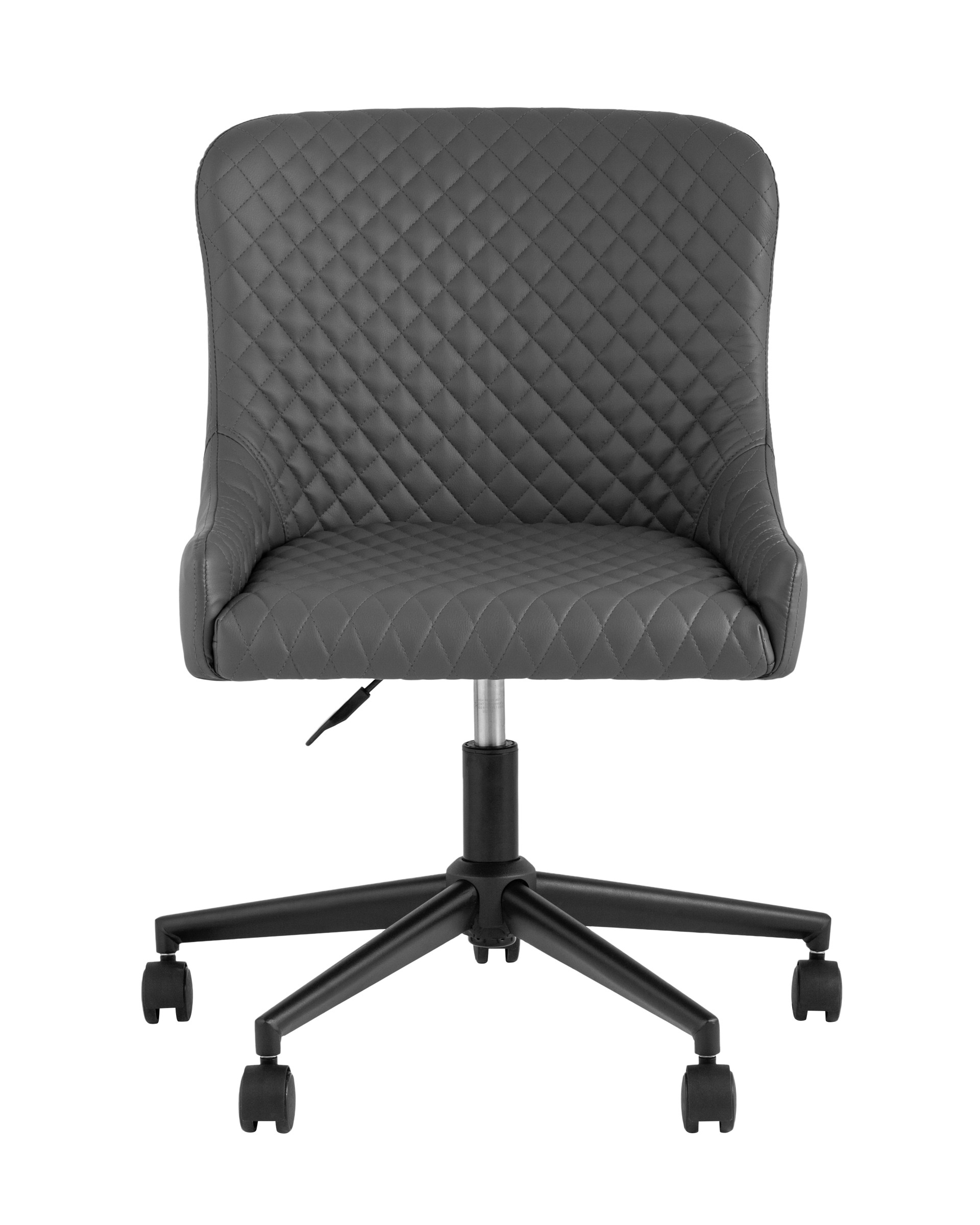 Приятная на ощупь обивка с красивой декоративной строчкой выполнена из экокожи - прочного износостойкого и гигроскопичного материала. Крестовина изготовлена из металла. Стул без подлокотников, подойдет для любого рабочего места. Механизм регулировки - газ-лифт, выбор высоты сиденья - от 40 до 50 см.
