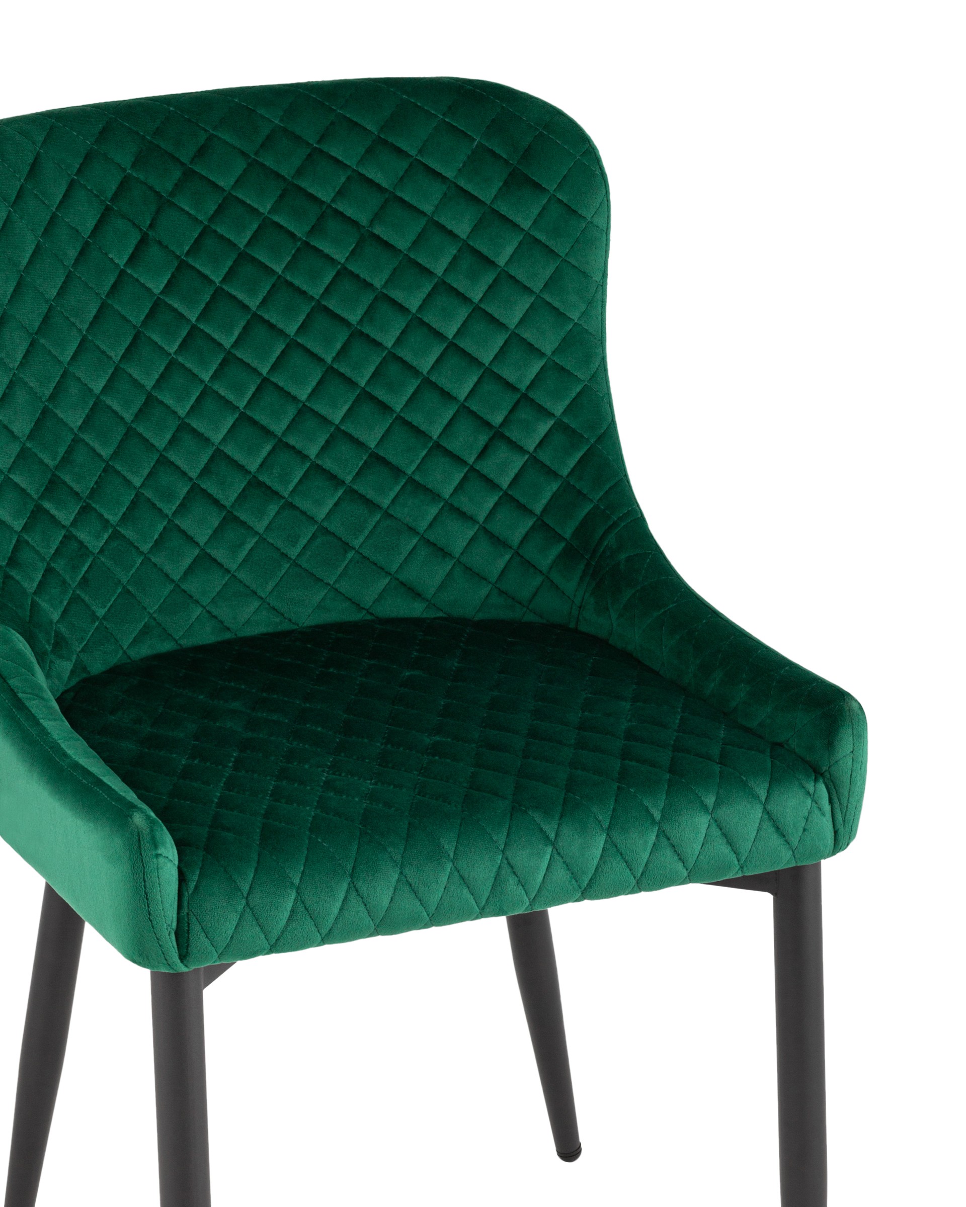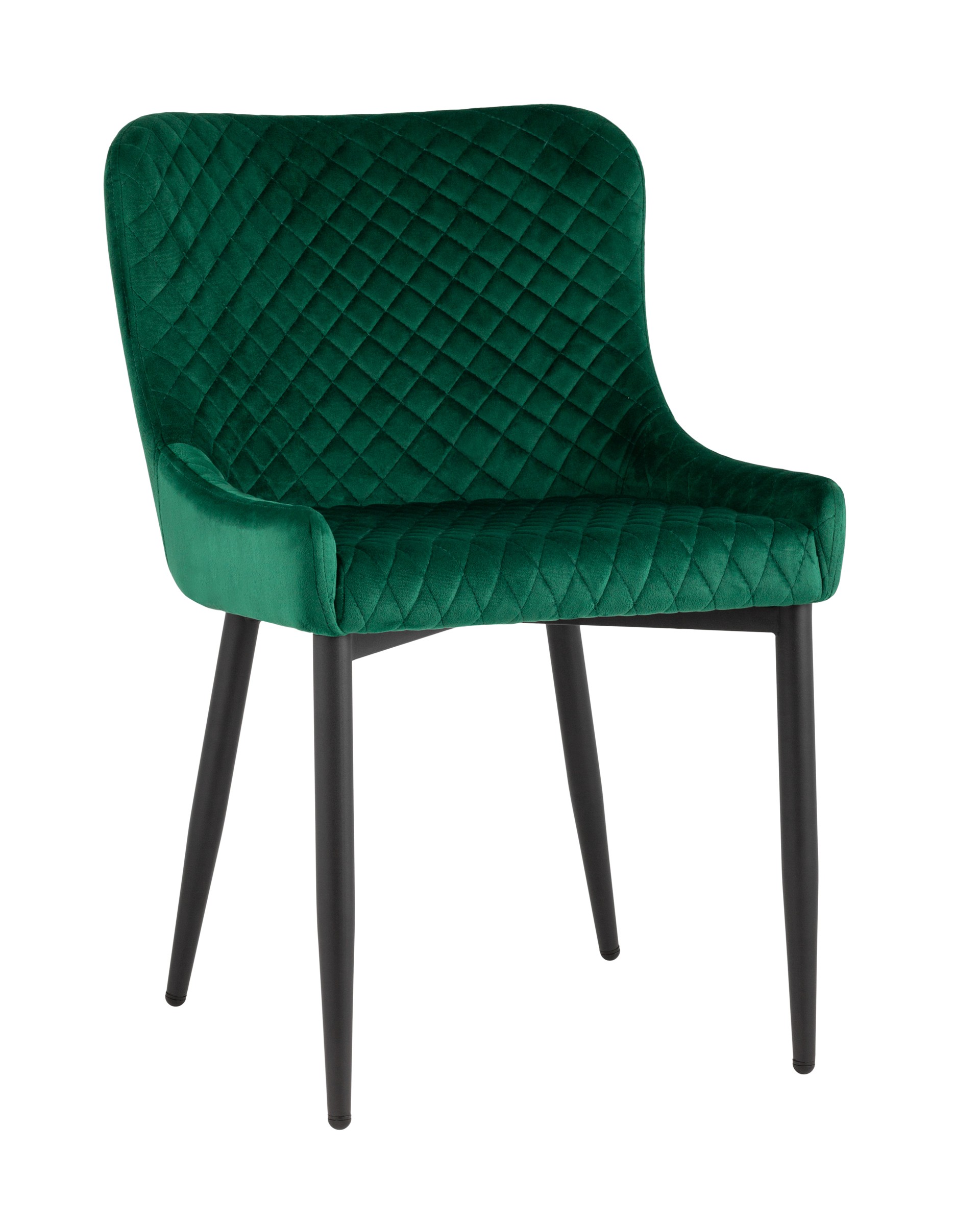 Мягкое прямоугольное сиденье с невысокой спинкой анатомической формы подарит комфорт и уют. В качестве обивки используются прочные износостойкие материалы с декором в виде ромбов. Прямые металлические черные ножки, имеют нестандартную форму в виде перевернутого конуса, поэтому обеспечивают хорошую устойчивость и делают стул оригинальным. Изделие прекрасно смотреться как отдельный предмет мебели, так и в комплекте с обеденным столом.