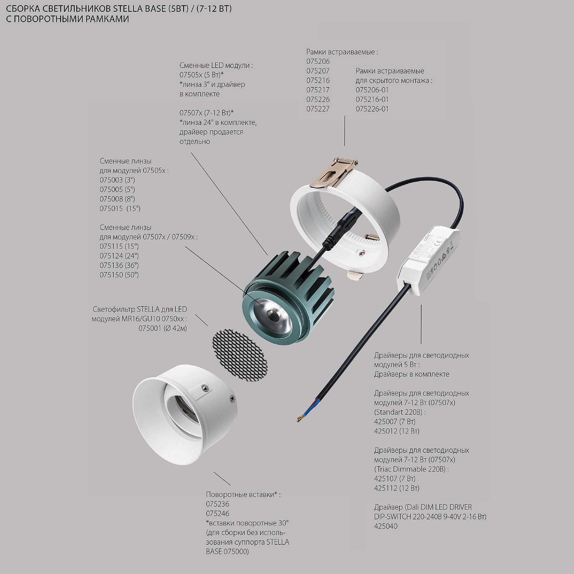 Вставка алюминиевая поворотная (Суппорт) Lightstar STELLA BASE 075236