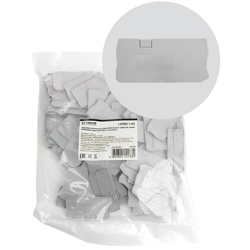 Торцевая заглушка для ЗНИ LD573 2,5 мм (JXB PT 2,5), серый Stekker 49268 49268