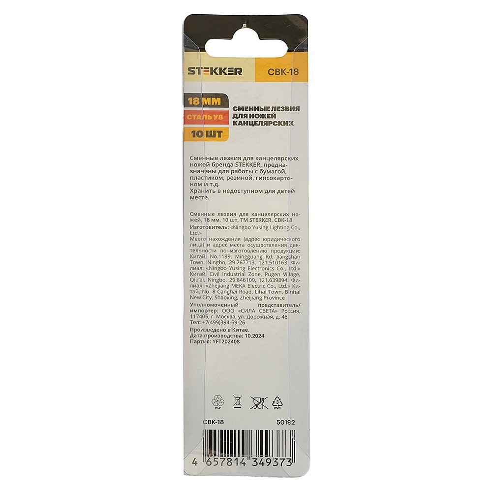 Сменные лезвия для канцелярских ножей, блистер, 18 мм, 10 шт Stekker CBK-18 50192