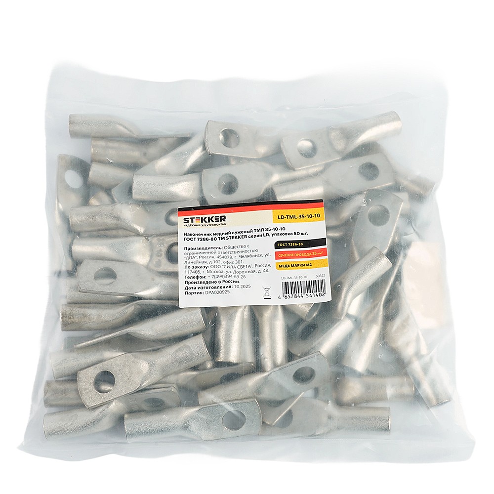 Наконечник медный луженый Stekker LD-TML-35-10-10 50642