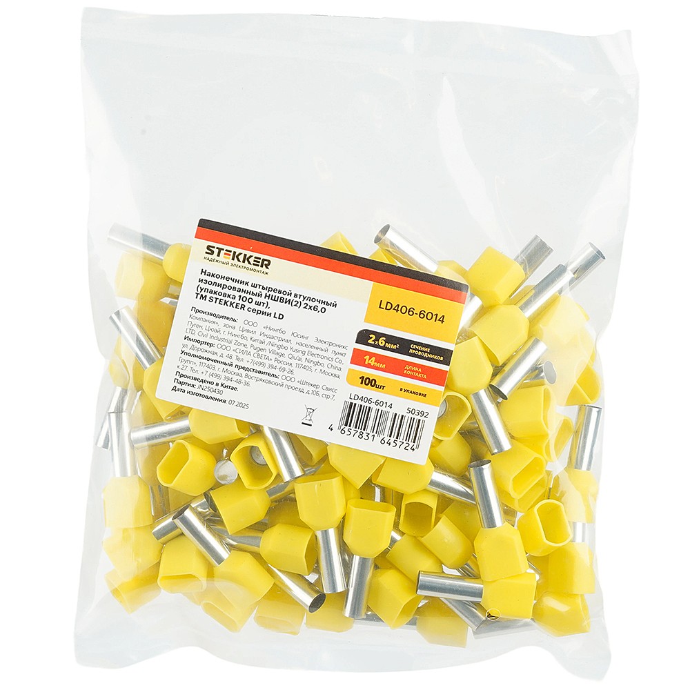 Наконечник Штыревой Втулочный Изолированный Stekker LD406-6014 50392