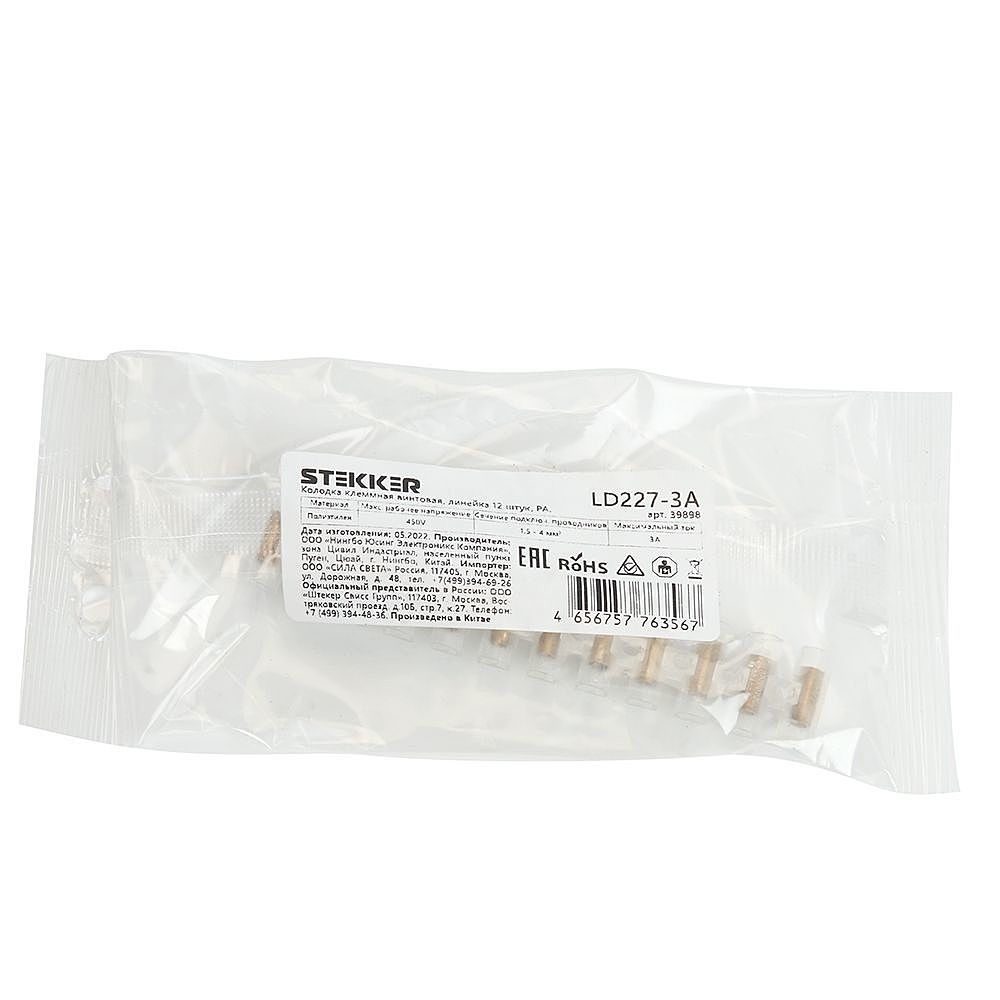 Колодка клеммная винтовая Stekker LD227-3A 39898