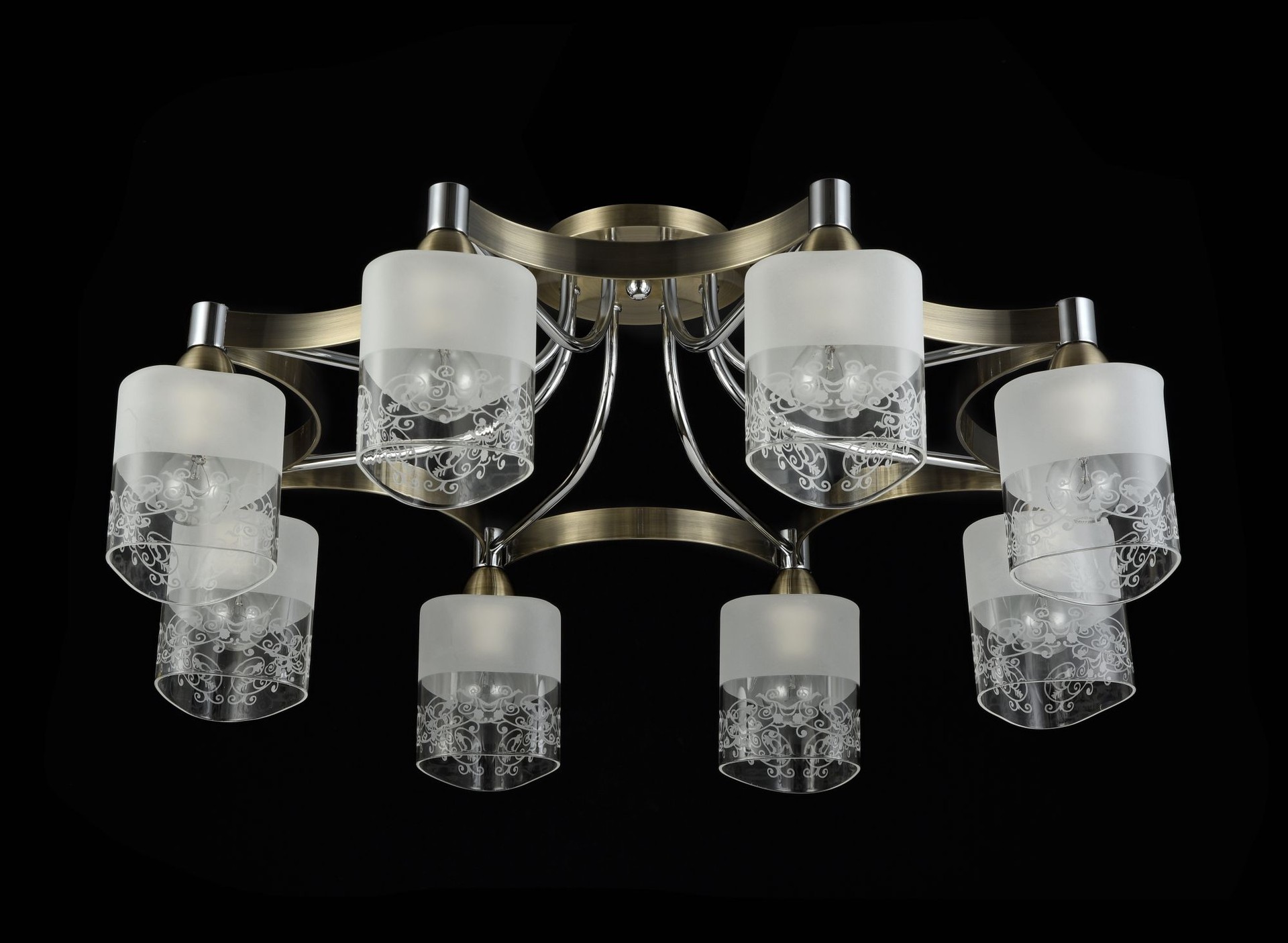 Люстра. Способ крепления: монтажная пластина прикручивается к потолку. Цвет Хром + Бронза. На всех светильниках используются патроны повышенной мощности. Можно использовать лампочки до 60W (Цоколь Е14). Красочная Инструкция по эксплуатации, сборке на русском языке в комплекте.