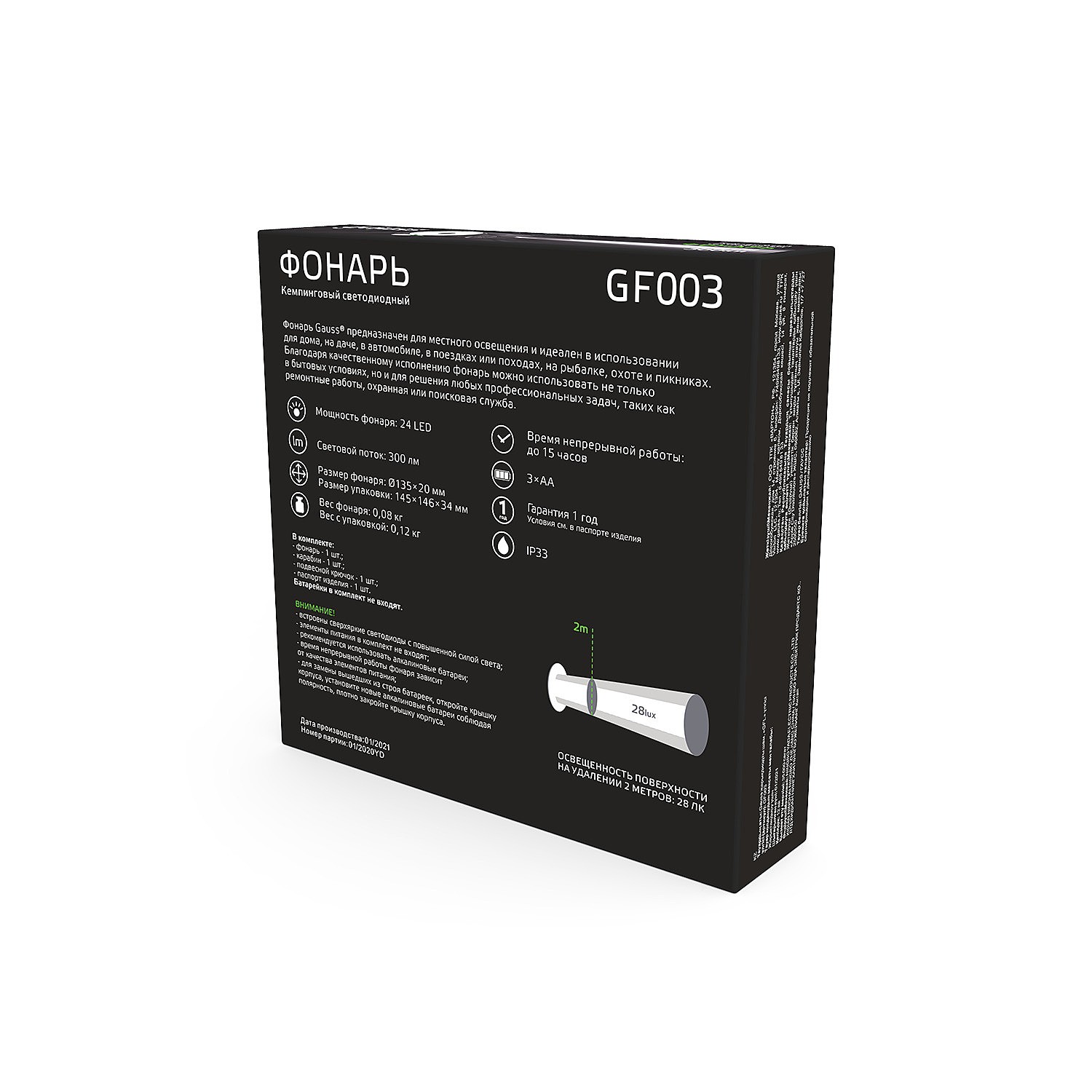 Фонарик Gauss Kemping GF003