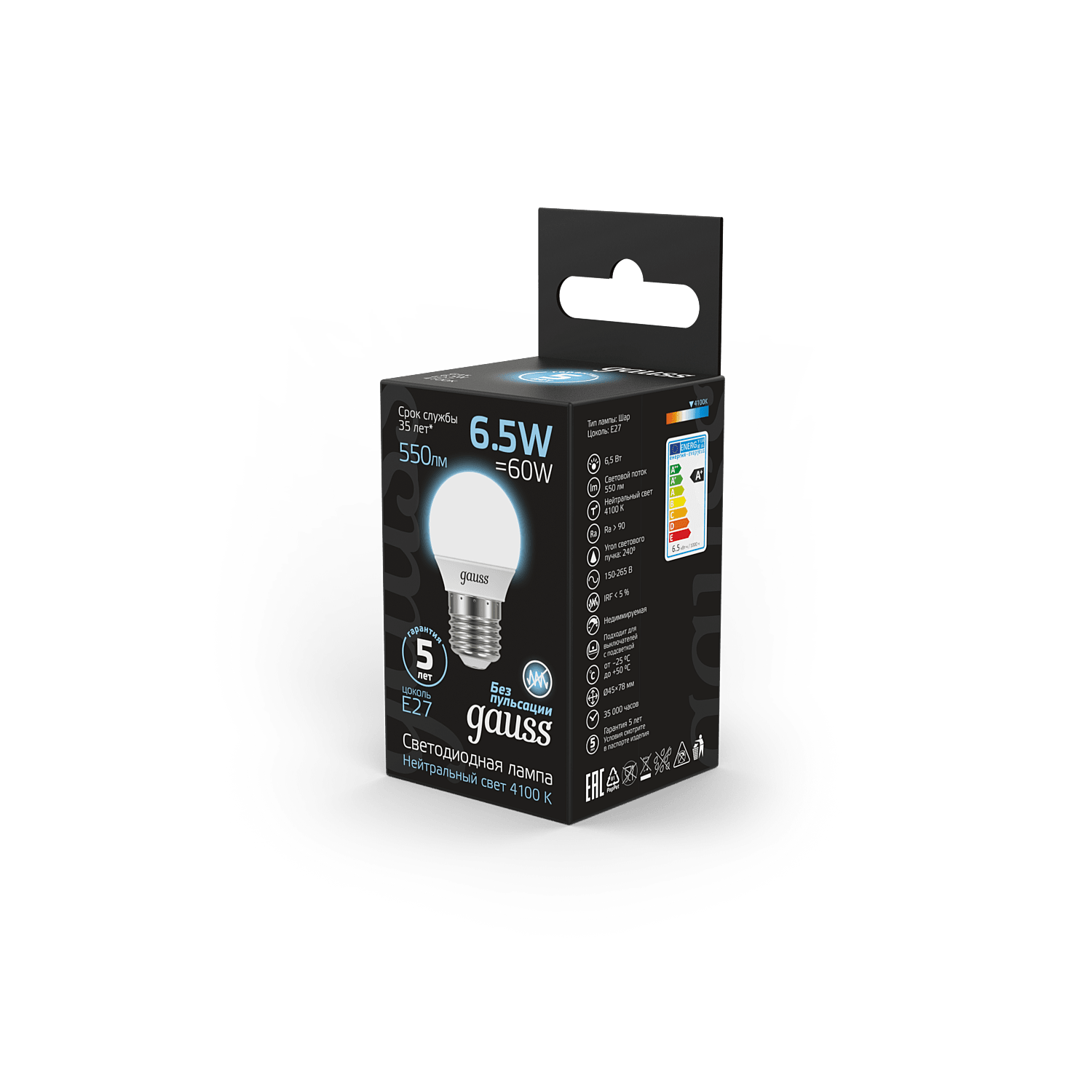 Светодиодные лампы Gauss Black в форме шара подойдут для большинства светильников, так как в категории присутствуют два вида цоколя. Светодиодные лампы Gauss Black активно используются для освещения жилых и офисных помещений. Лампы излучают приятный свет, который комфортен для глаз, без эффекта пульсации. Матовая колба ламп равномерно рассеивает свет и подходит для открытых светильников и прозрачных плафонов. Все лампы Gauss при колебаниях напряжения лампы не теряют яркость и не мерцают.