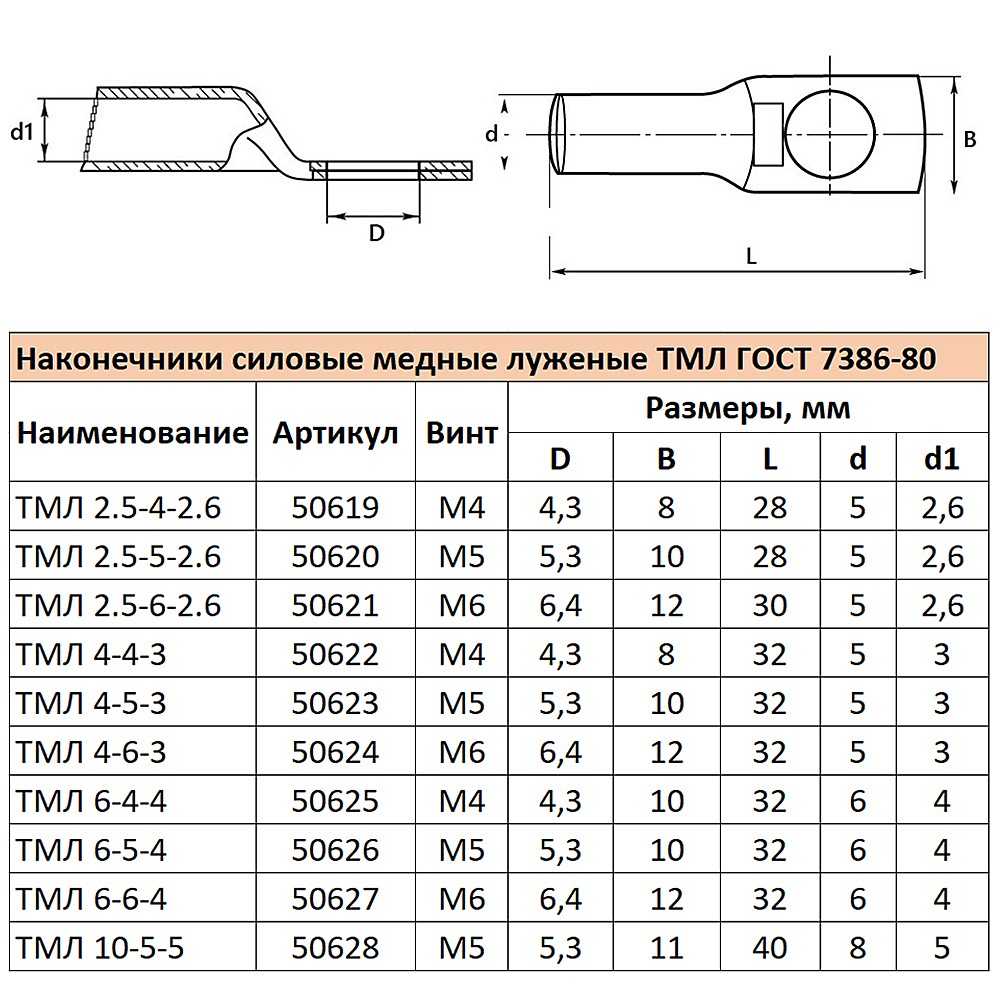 Наконечник медный луженый Stekker LD-TML-6-5-4 50626