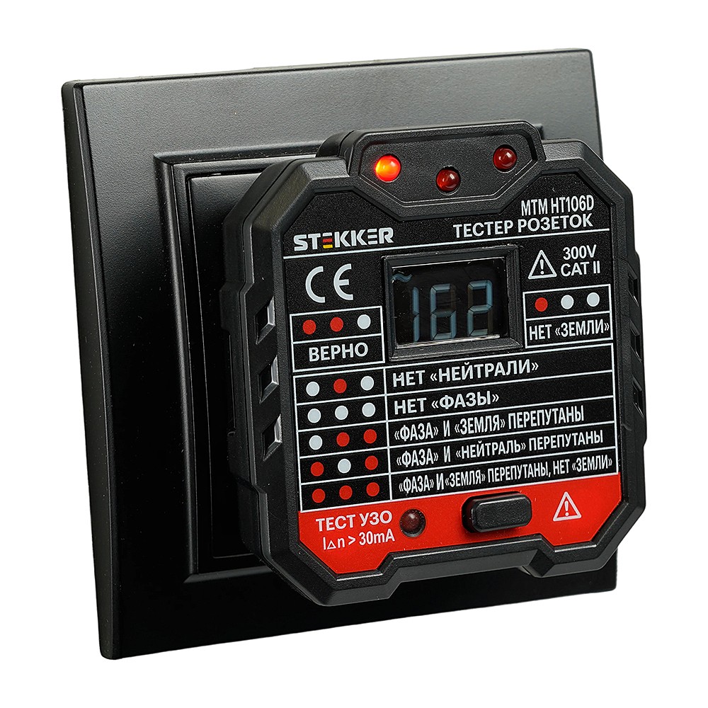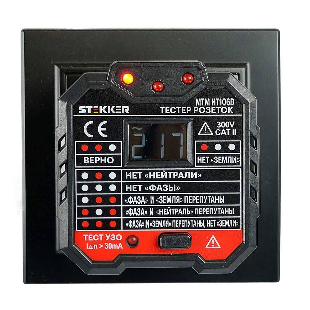 Тестер розеток и УЗО, питание от сети 230V, Stekker MTM HT106D 49997