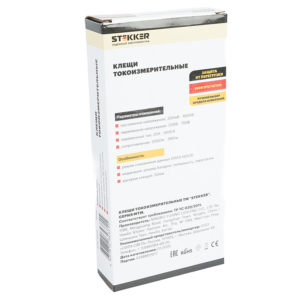 Клещи токоизмерительные, 1999 отсчетов Stekker MTM M266 49996