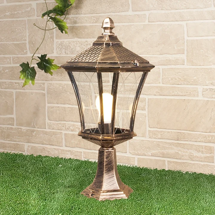 Уличный наземный светильник Elektrostandard Virgo Virgo S черное золото (GLXT-1450S) от Elektrostandard, в стиле классика. Материал — алюминий, цвет золото, плафон из стекло, форма плафона — шестигранник. Модель имеет 1 лампу, цоколь E27, мощность 60 Вт. Степень защиты IP44. Габариты: высота 520 мм, ширина 230 мм. Декор — классический, коллекция Virgo, наземные уличные — Классический, наземные уличные — Стеклянный плафон.