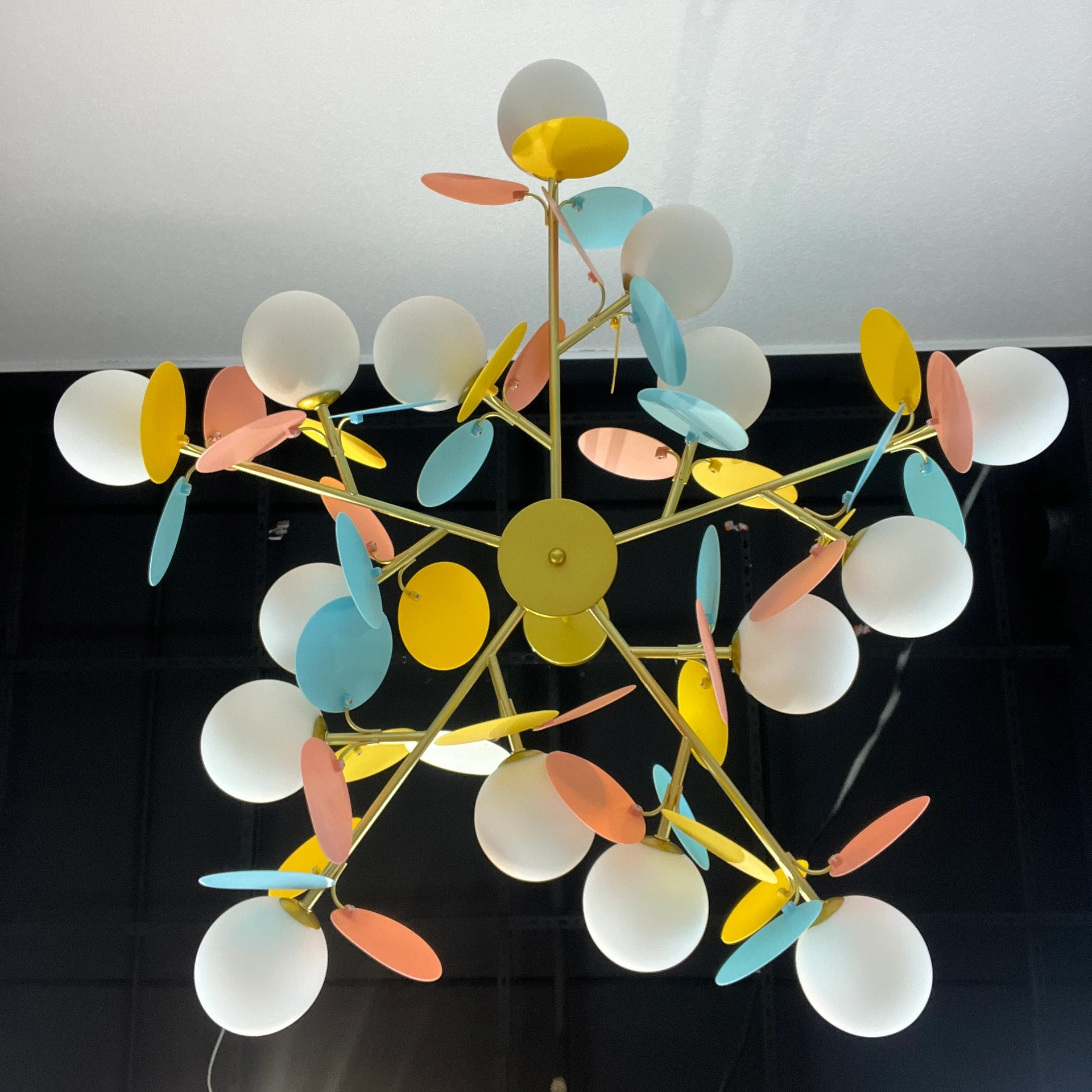 Люстра на штанге ImperiumLoft Matisse-Self01 189763-26 от ImperiumLoft, подходит для кухни, для гостиной, в стиле современный. Материал — металл, цвет разноцветный, плафон из стекло, цвет плафона белый, форма плафона — шар. Модель имеет 15 ламп, цоколь G9, мощность 300 Вт. Степень защиты IP20. Габариты: высота 300 мм, ширина 900 мм, диаметр 900 мм. Коллекция Matisse-Self01.