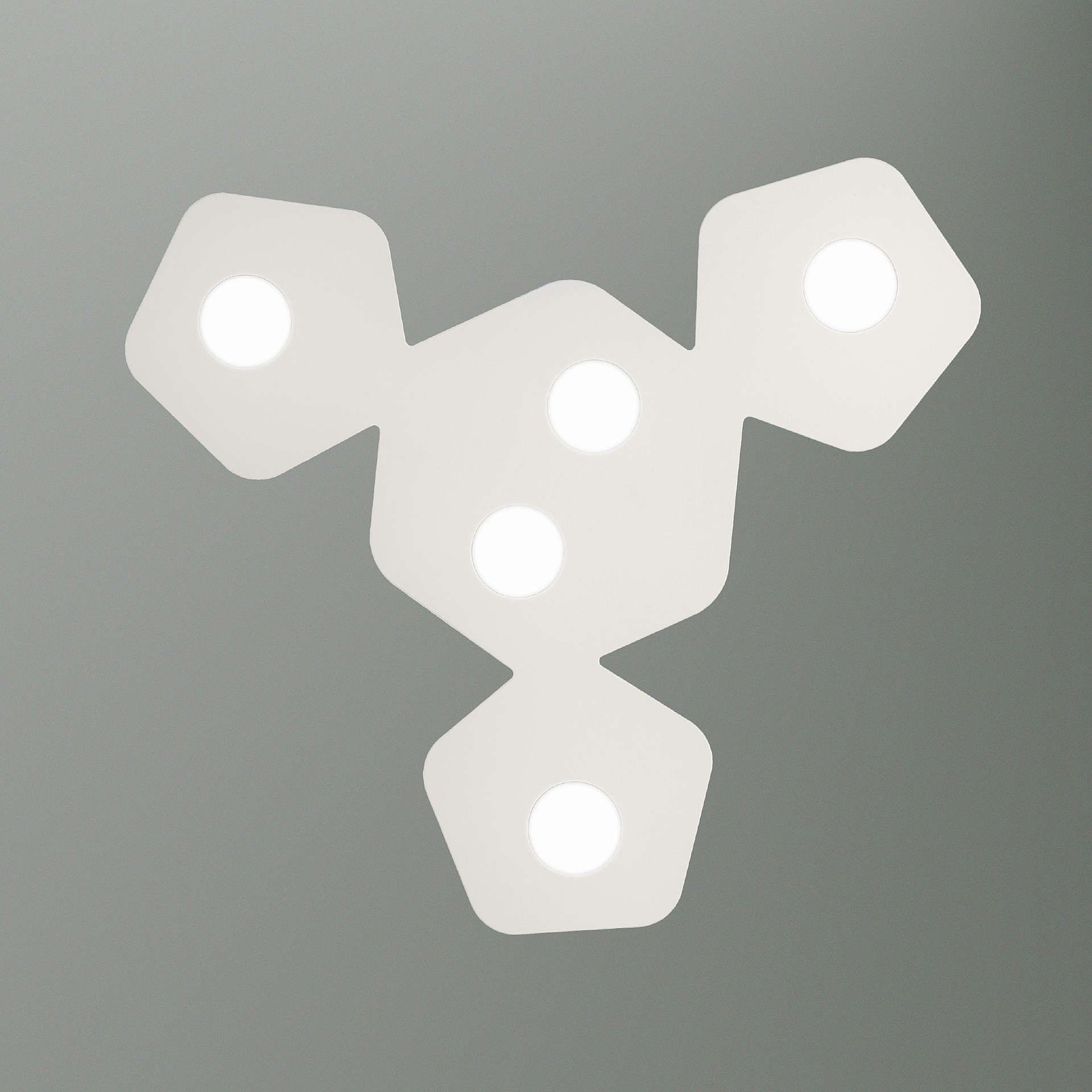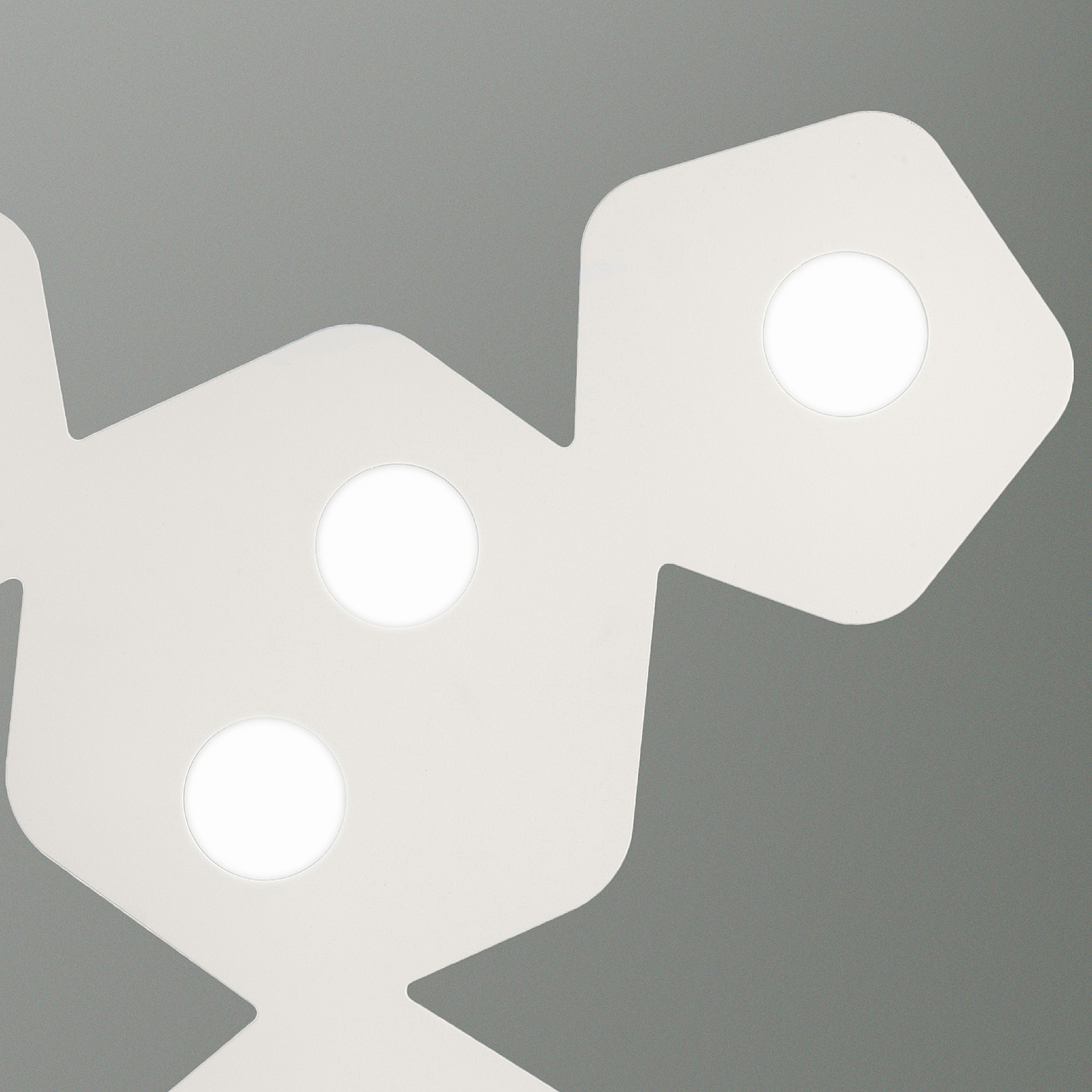 AREA - это минималистичный и универсальный дизайн с возможностью построения необычных композиций, обеспечивая индивидуальность вашему интерьеру. Коллекция предлагает декоративную легкость в своих формах и белой эпоксидной отделке, делая неожиданную асимметрию светодиодов выдающейся деталью дизайна. Каждый потолочный светильник состоит из небольших пятиугольников, вмещающих одни светодиод, и больших шестиугольников, вмещающих два или четыре светодиода. Эта коллекция позволяет подобрать формы, размеры и расположения света так, чтобы стать успешным дополнением именно в вашем интерьере. Ансамбль из нескольких светильников AREA идеально подойдет для светлой гостиной.