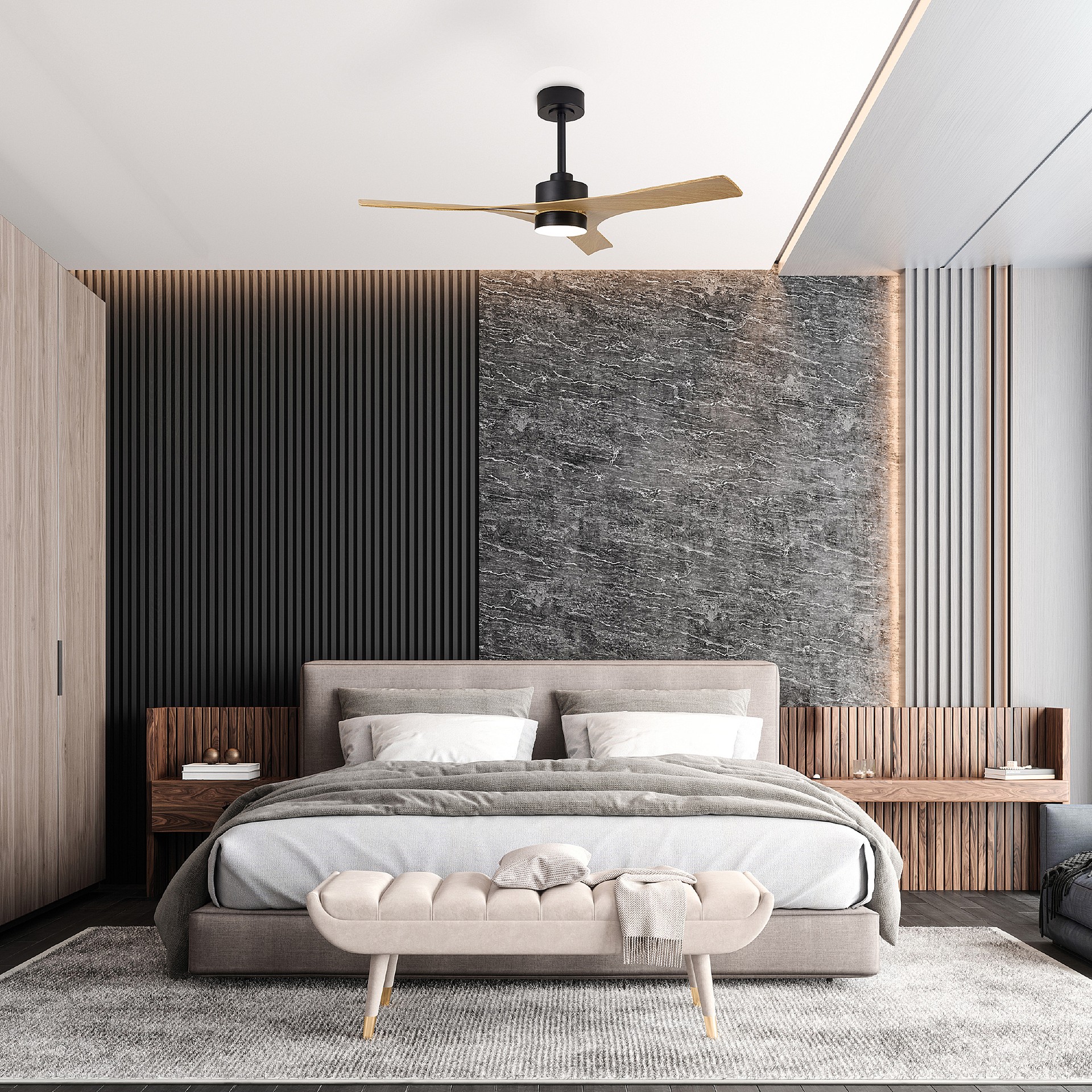THAI - это минималистичный, но мультифункциональный предмет интерьера. С этой коллекцией Mantra привносит инновации в сектор вентиляционных элементов, добавляя оригинальность и изобретательность с помощью дизайна. Светильник THAI способен обеспечить прохладную вентиляцию и обогрев, также как и эффектное освещение комнаты. В то время как вентилятор является идеальным дополнением к любому интерьеру в летнее время, "инверторная функция" (в положении встречного вращения) позволяет собрать горячий воздух и равномерно распределить его по комнате зимой. Коллекция идеально подходит для спален, благодаря своему тихому, но эффективному двигателю. THAI впишется в спокойные и размеренные интерьеры с фокусом на функциональности и минимализме. Кроме того, благодаря возможности THAI устанавливать различные интенсивности света и вентиляции, он может быть размещен в больших помещениях, таких как гостиная или офис, кухня или игровая зона. Все настройки могут быть изменены с помощью пульта дистанционного управления. Выпускаются в трех вариантах цвета: белый, черный, под дерево.