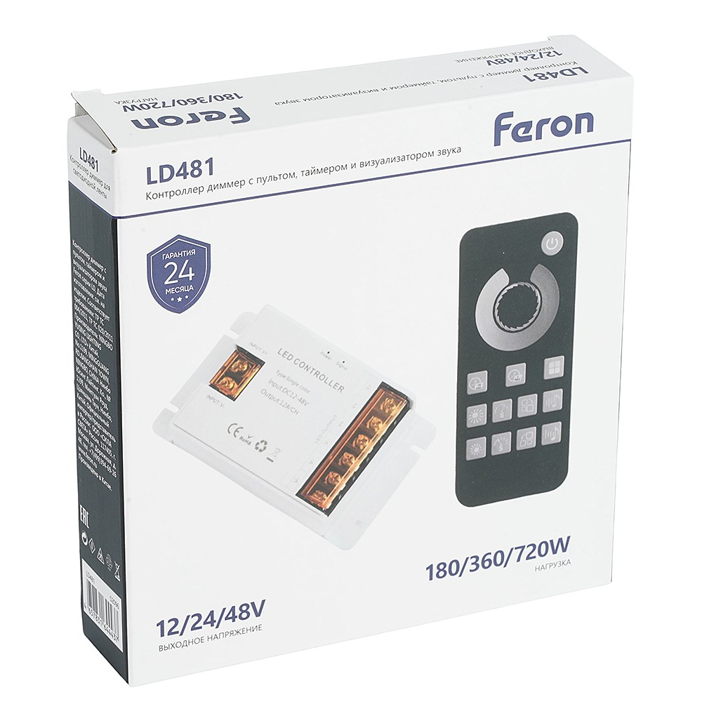 LD481 Контроллер ДИММЕР с пультом, таймером и визуализатором звука, 12-24-48V