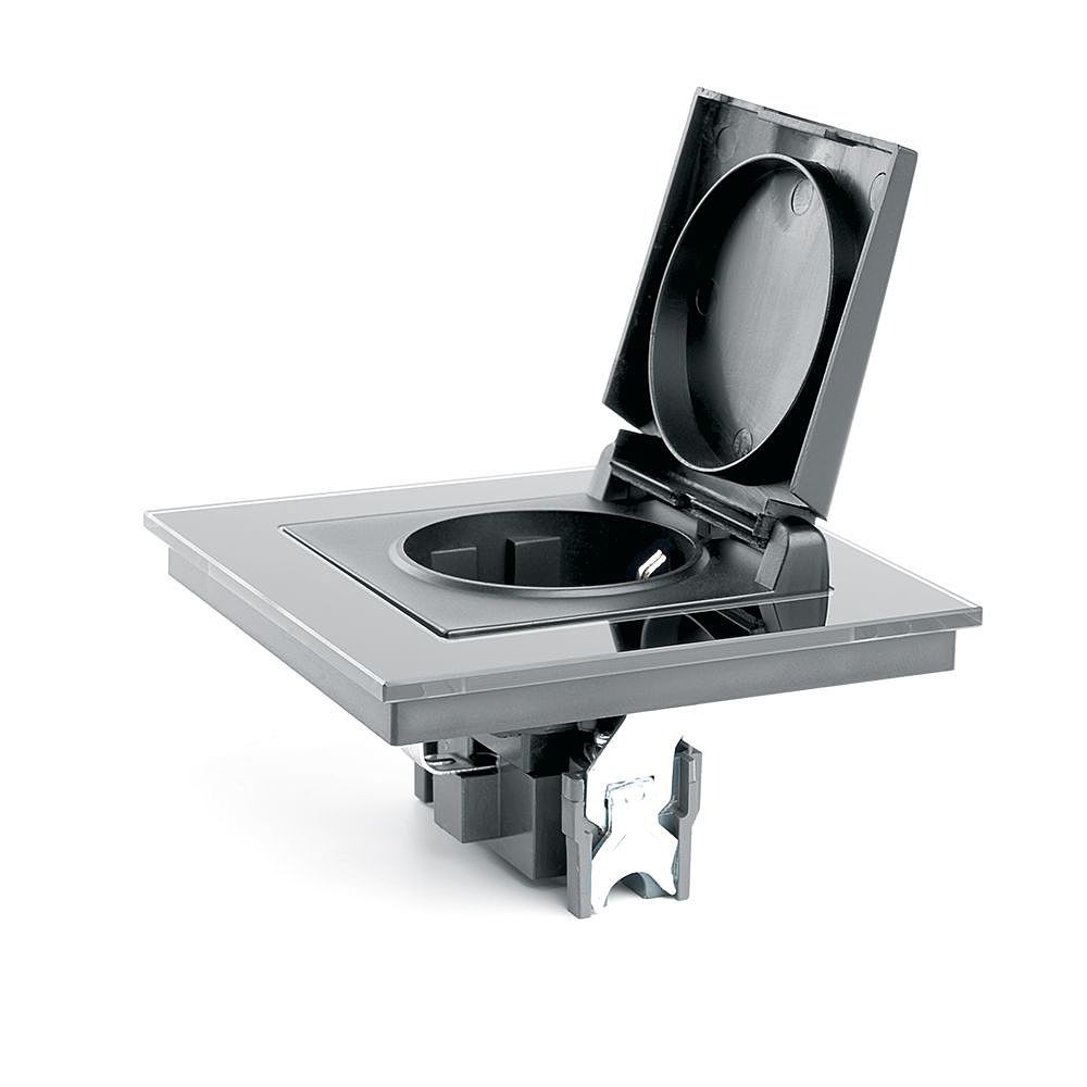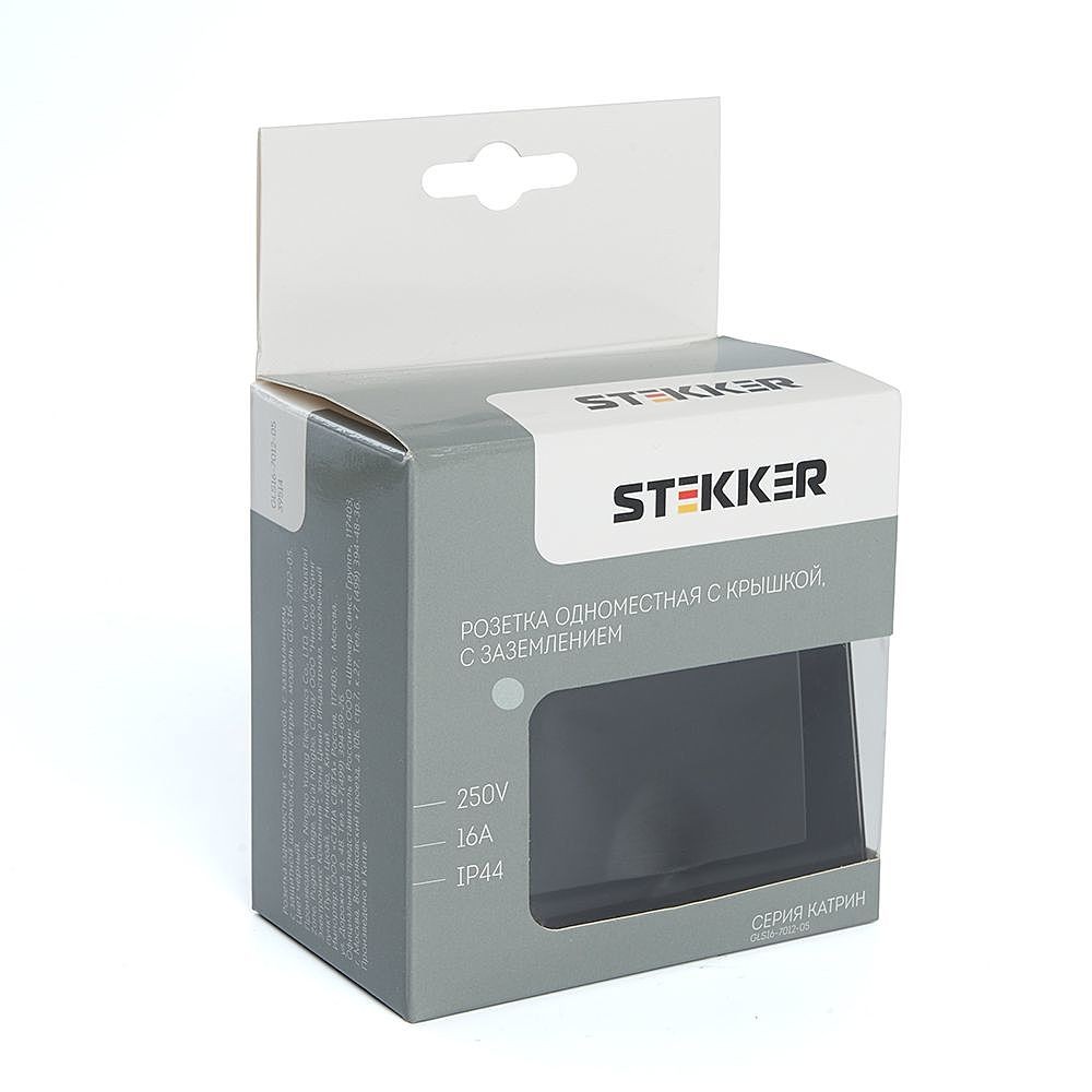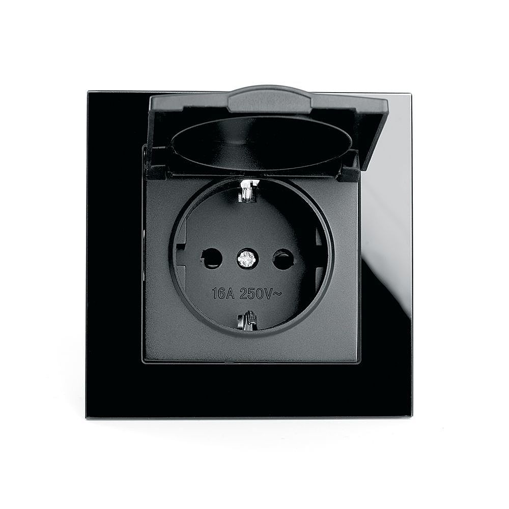Розетка STEKKER GLS16-7012-05 (IP44 при закрытой крышке) на 1 гнездо, с крышкой, с заземлением. Материал: Закаленное стекло, ABS пластик, полипропилен, латунь, цвет черный, размер 84*84*35мм. Номинальное напряжение 250, номинальный ток 16А, диапазон рабочих температур 0..+35градусовC, IP20