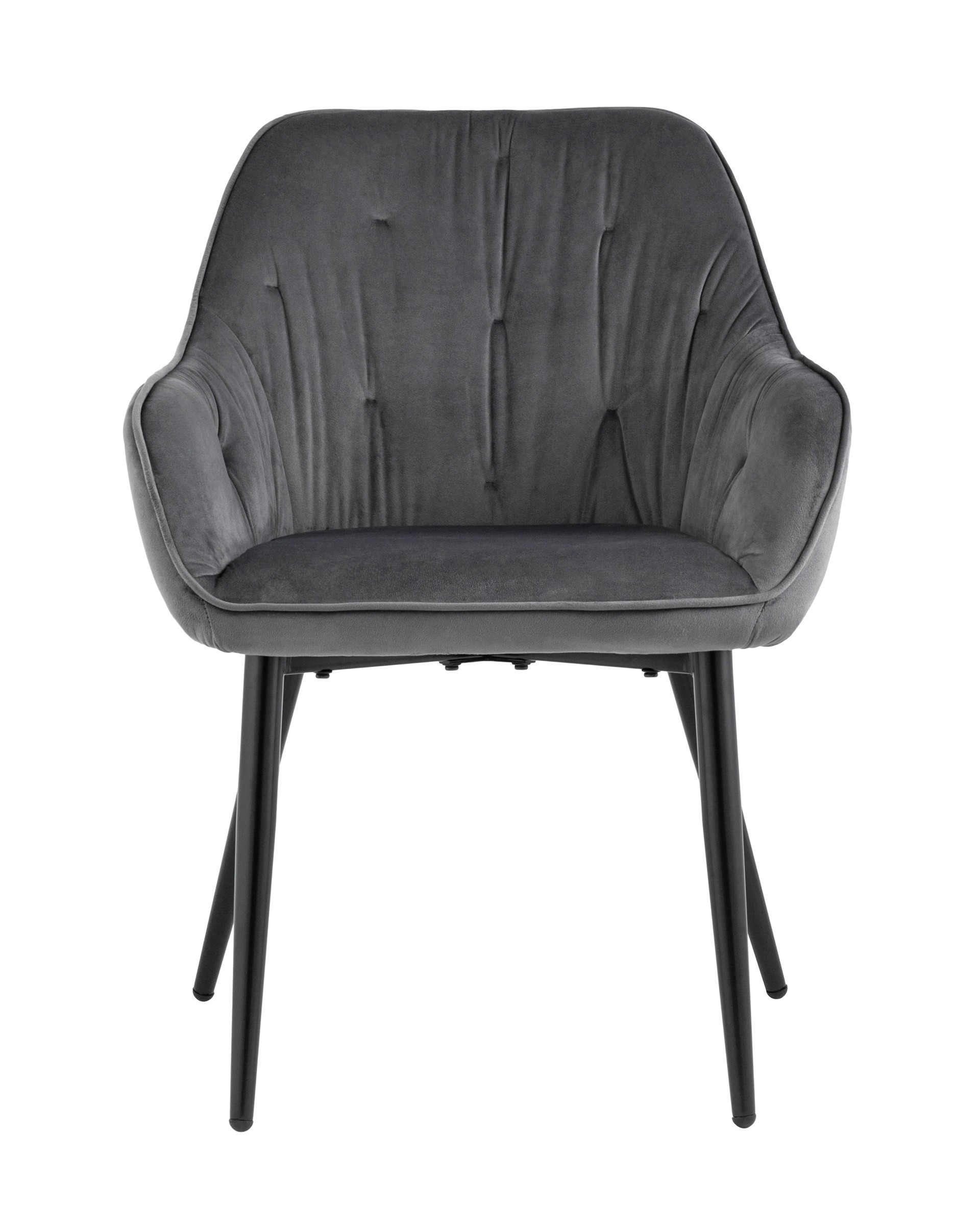 Удобный и мягкий стул украсит любой интерьер. Обивка спинки и сидения выполнена из прочного и износостойкого велюра. Внутренняя сторона стула с декором, удобные подлокотники добавят комфорта. Ножки изготовлены из металла в черном цвете и обеспечивают хорошую устойчивость.