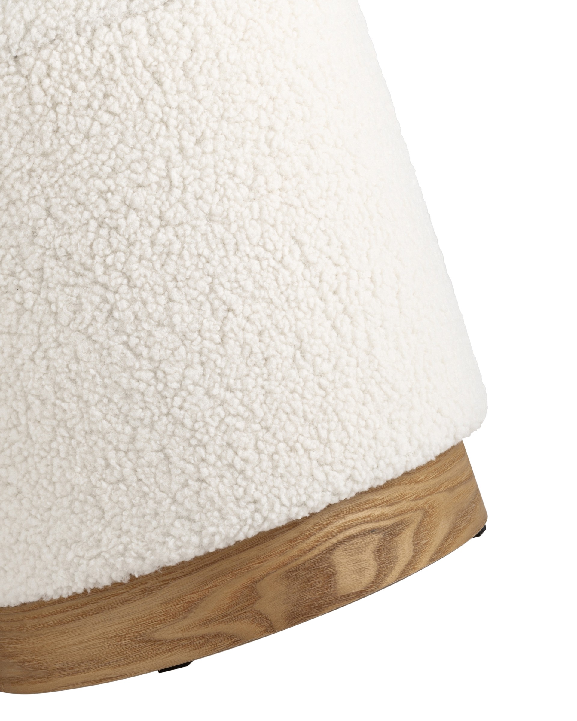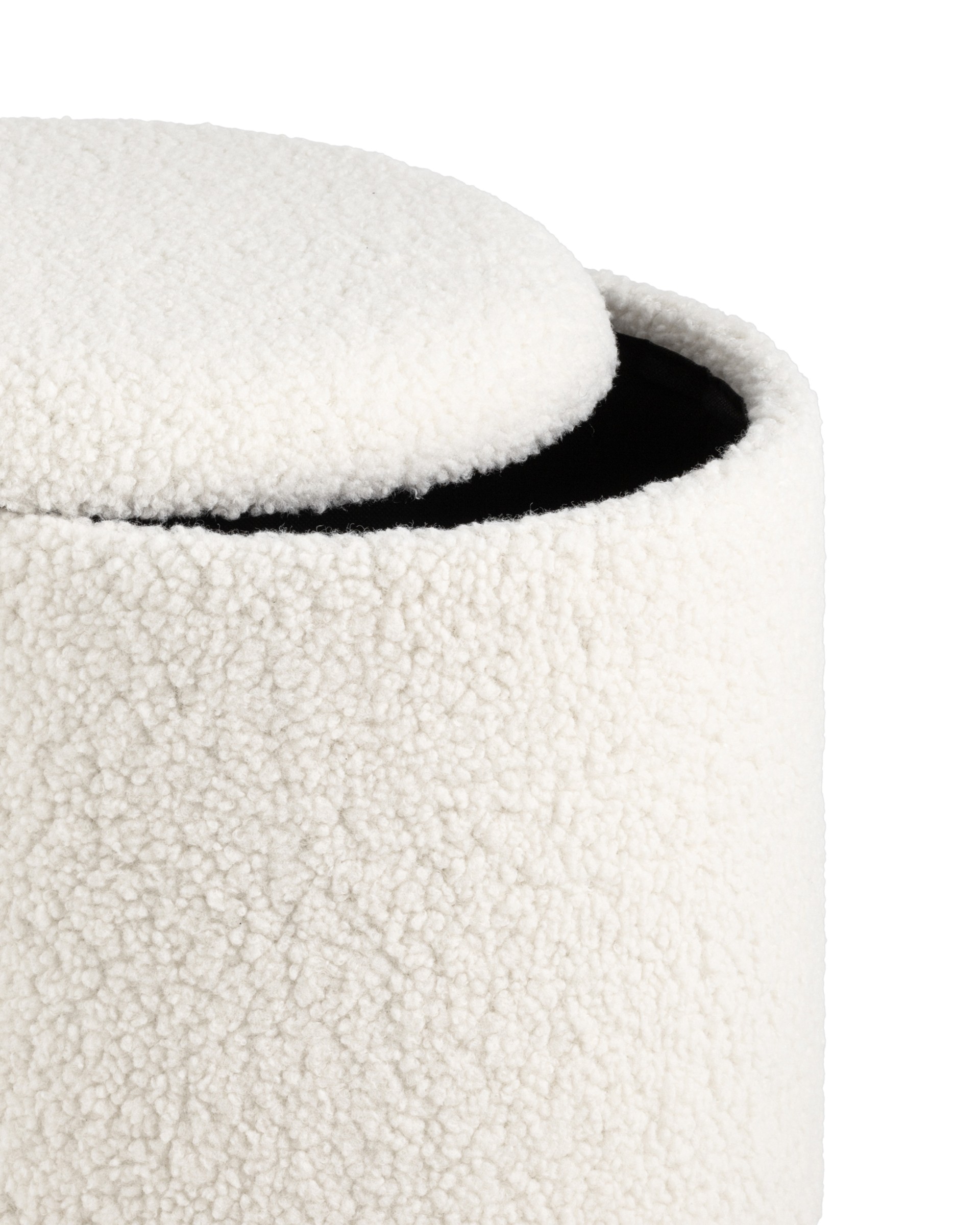 Лаконичный пуф в скандинавском стиле. Обивка выполнена из искусственного меха тедди - очень мягкий и приятный на ощупь материал. Прочный каркас из фанеры выдерживает на грузку до 150 кг. Основание из светлого массива дерева гармонично сочетается с белой обивкой. Пуф оснащен вместительным ящиком для хранения различный мелочей. Отличное функциональное дополнение для детской или спальни.