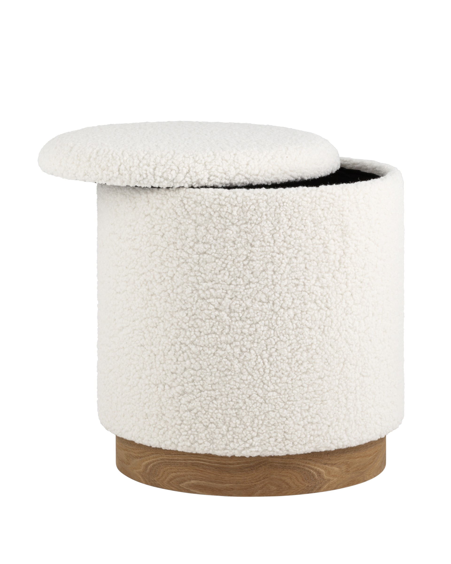Лаконичный пуф в скандинавском стиле. Обивка выполнена из искусственного меха тедди - очень мягкий и приятный на ощупь материал. Прочный каркас из фанеры выдерживает на грузку до 150 кг. Основание из светлого массива дерева гармонично сочетается с белой обивкой. Пуф оснащен вместительным ящиком для хранения различный мелочей. Отличное функциональное дополнение для детской или спальни.